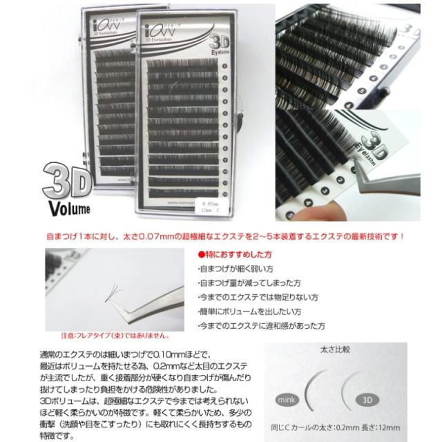 3Dボリュームは、超極細なエクステで、今までにないほど軽く柔らかいのが特徴です。