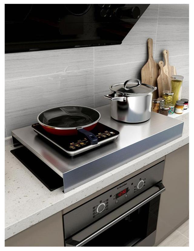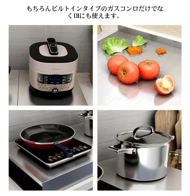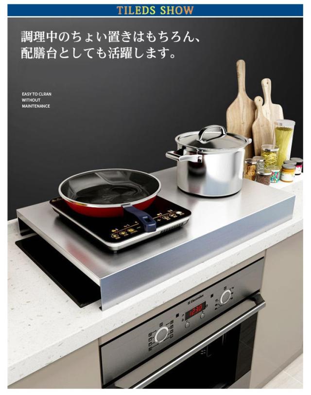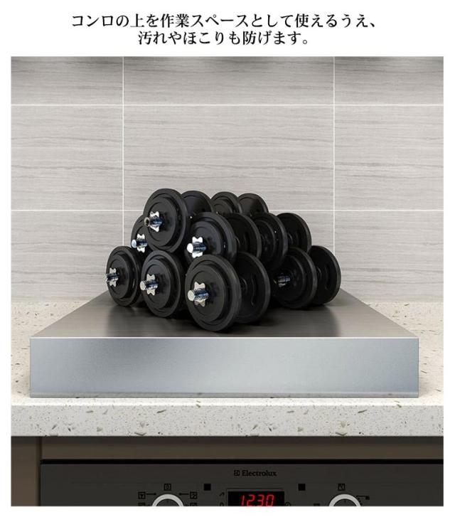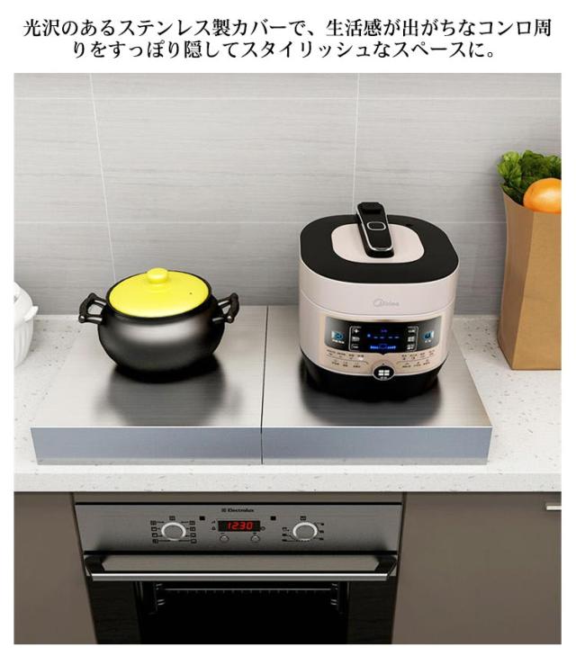 | ガスコンロの上が収納・作業スペースに早変わり!組立いらずで着いたらすぐに使えます。 調理中のちょい置きはもちろん、配膳台としても活躍します。 もちろんビルトインタイプのガスコンロだけでなくIHにも使えます。 光沢のあるステンレス製カバーで、生活感が出がちなコンロ周りをすっぽり隠してスタイリッシュなスペースに。 錆や汚れに強く掃除も簡単で長持ちします! コンロの上を作業スペースとして使えるうえ、汚れやほこりも防げます。 | |