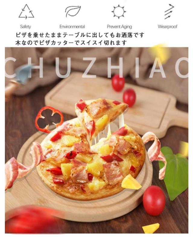 | 焼きたてのピザをそのまま乗せることができるピザトレイ ピザを崩すことなく綺麗にオーブンから出せます ピザを乗せたままテーブルに出してもお洒落です 木なのでピザカッターでスイスイ切れます ピザ以外にお好み焼きやパイを焼く時にも便利に使えます 取っ手には穴がついており、吊して収納することで省スペースを兼ねつつキッチンを可愛らしく演出することも | |