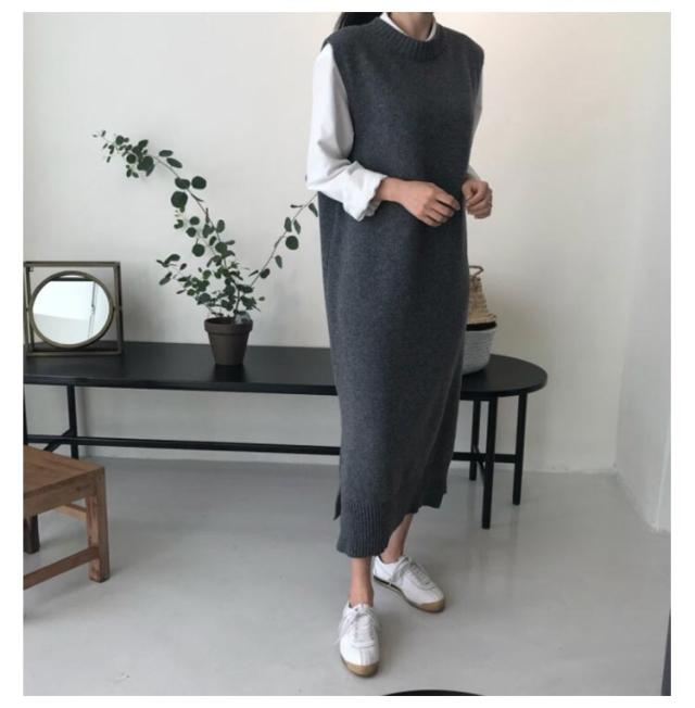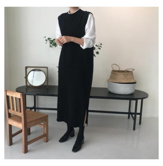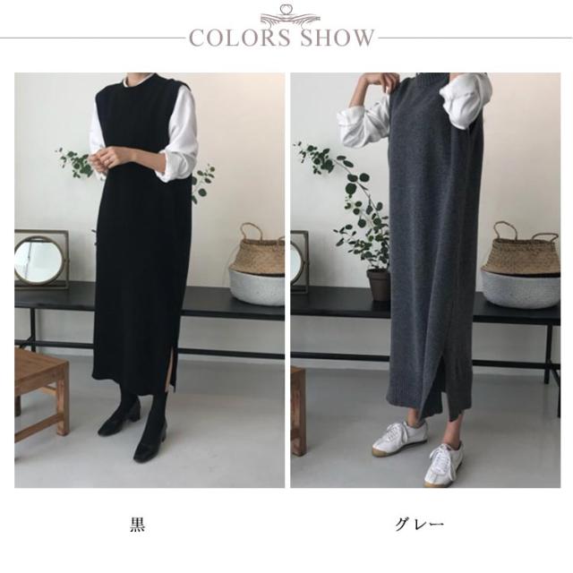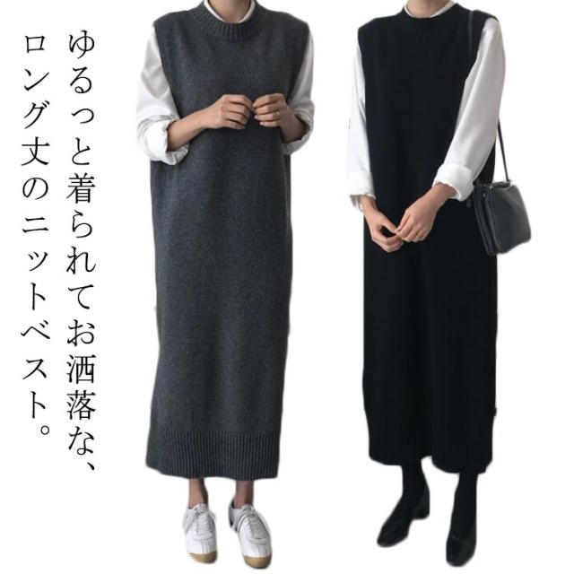 送料無料 ニットベスト レディース ニットワンピース ロングベスト レディース ベストワンピース ジャンパースカート きれいめ リブニット ニット 柔らかい ノースリーブ 無地 重ね着 春 着回し 着痩せ お洒落 体型カバー 春 秋