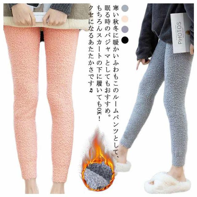 レギンス ルームウェア ナイトウェア もこもこ ストレッチ マシュマロタッチ 柔らかい 無地 春 秋 冬 おしゃれ かわいい 送料無料 レディース パジャマ ルームパンツ 裏起毛 スパッツ タイツ ふわふわ 暖かい あったか 防寒 長ズボン ロングパンツ 部屋着