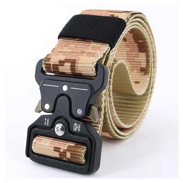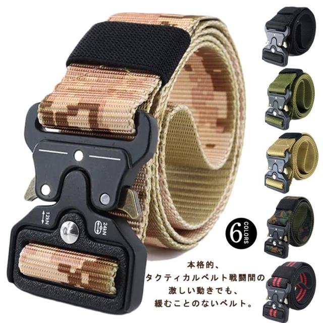 送料無料 ベルト メンズ ワンタッチ カモフラージュ柄 タクティカルベルト ナイロンベルト ミリタリー バックル 装備 作業用 サバイバルゲーム アウトドア DIY ネイビー グリーン ブラック ブラック 125cm