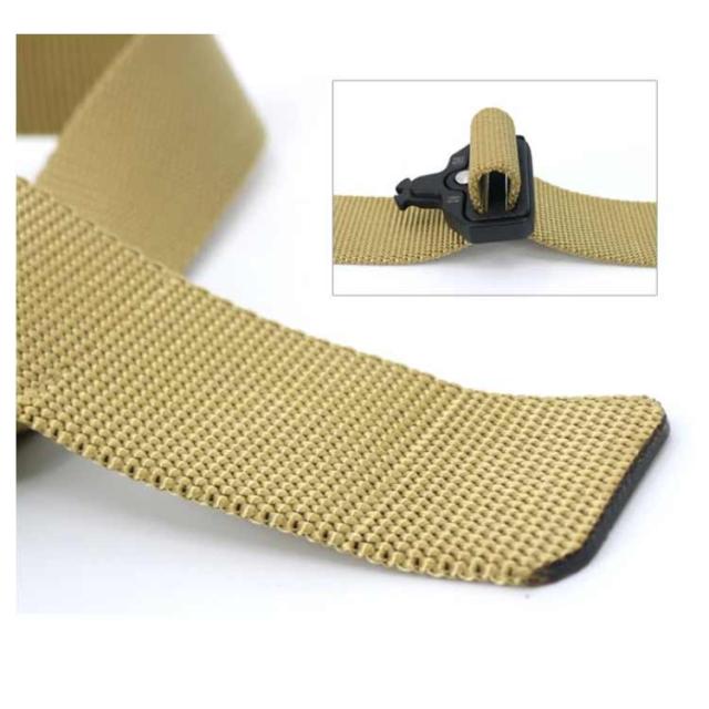 | 本格的、タクティカルベルト戦闘間の激しい動きでも、緩むことのないベルト。 腹ばいでのほふく前進で地面にこすりつけられても外れないバックルそれでいて、容易に脱着できるバックル。 バックルは頑丈な造りになっていて、しっかり締めて留めることができます。 | |