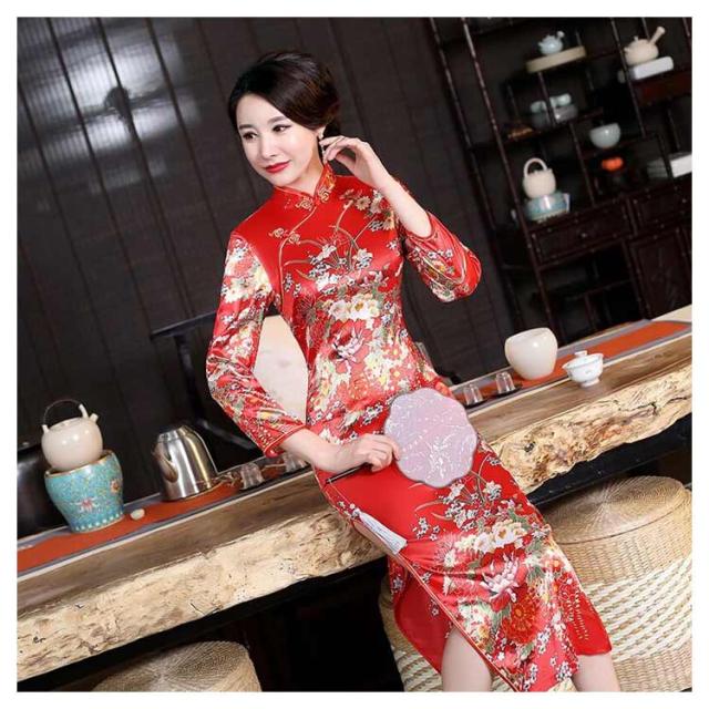 サイドスリット チャイナドレス ミモレ丈 ロング丈 ワンピース 優雅 セクシー 七分袖チャイナドレス パーティードレス エレガント レトロ 花柄 二次会 パーティー お呼ばれ 演奏会 発表会 披露宴 同窓会 S M L XL 2XL 3XL 4XL 5XL 6XL