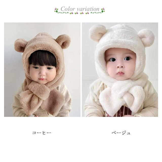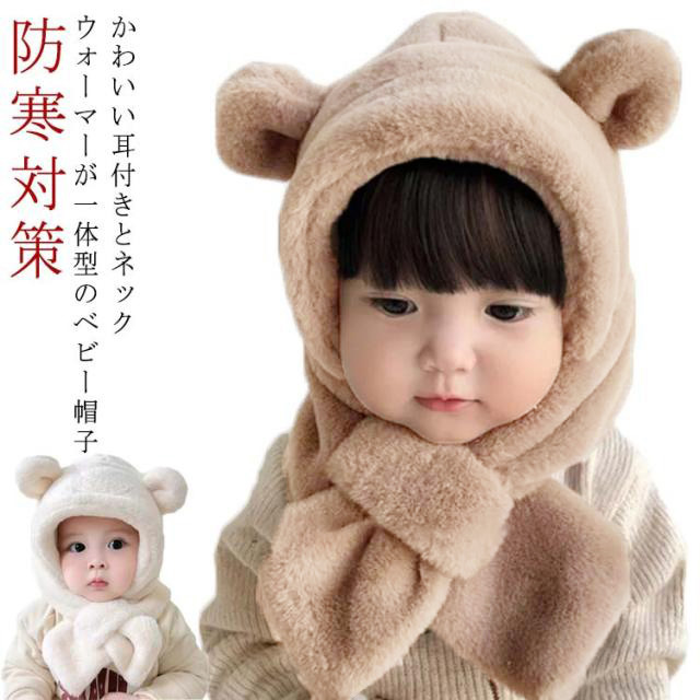 | かわいい耳付きとネックウォーマーが一体型のベビー帽子 【デザイン】定番ナチュラルカラーでいつものお洋服に合わせやすく着脱簡単・締め付け感のない気持ちいい素材でお子様の頭部を優しく守ります・男の子でも女の子でもキュートなアイテム・毎日のお出かけや通園に | |