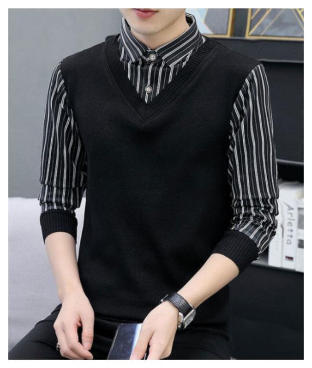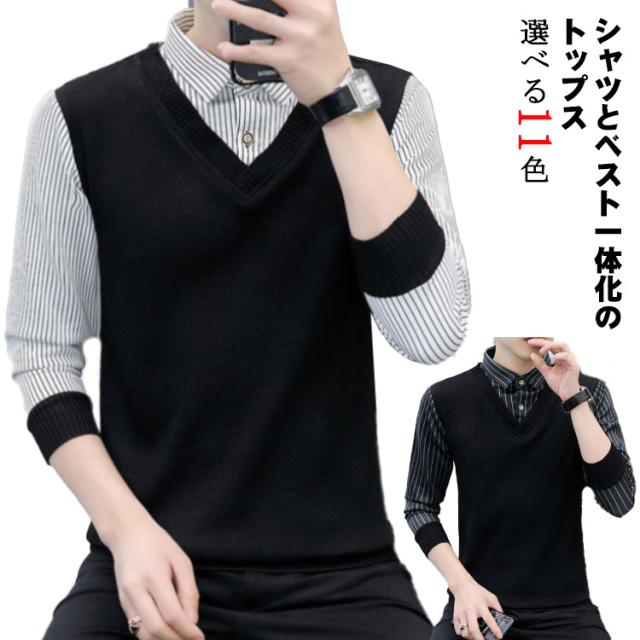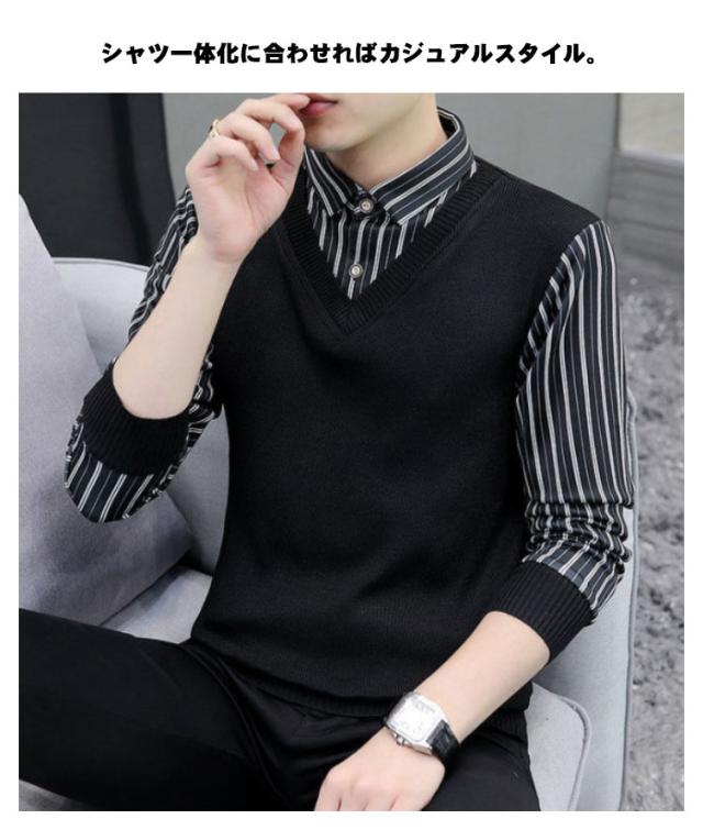 ベスト ニット メンズ ニットベスト 春 秋 冬 シャツ vネック 大きいサイズ お洒落 一体化 シンプル チョッキ 重ね着 トップス ゴルフウェアセーター 40代 50代 60代 70代 80代 男性 メンズファッション おしゃれ あったか 就活 敬老の日 プレゼント 紳士服 ギフト 送料無料