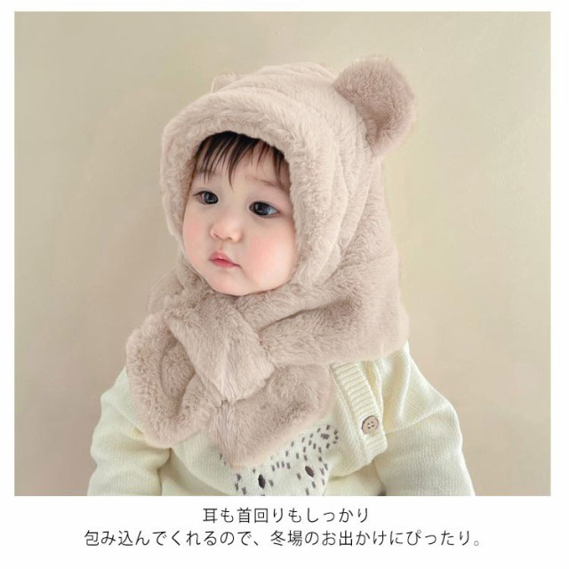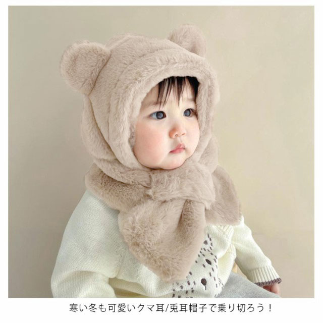 帽子 冬 子供 ベビー 帽子 耳付き 赤ちゃん うさぎ 帽子 ベビー キッズ ニット帽 ネックウォーマー 兎耳 フードウォーマー もこもこ キッズ帽子 マフラー 一体型帽子 くま耳 子供服 赤ちゃん 子供 男の子 女の子 プレゼント ギフト クリスマス 送料無料