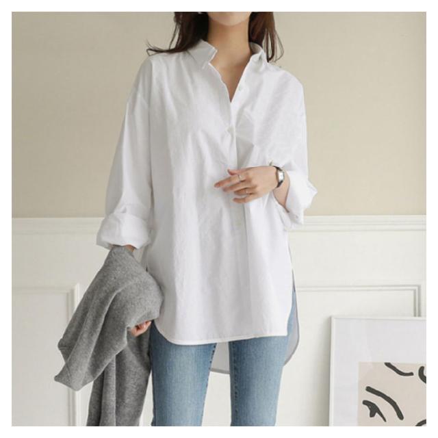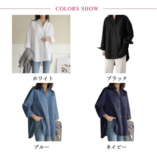 シャツ レディース 長袖 ゆったり 大きいサイズ ブラウス トップス ロングシャツ 白シャツ チュニック オーバーサイズ ビッグサイズ 前後差 ラウンドヘム サイドスリット 秋冬 春夏 カジュアル 無地 シンプル 体型カバー 送料無料