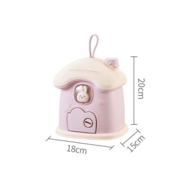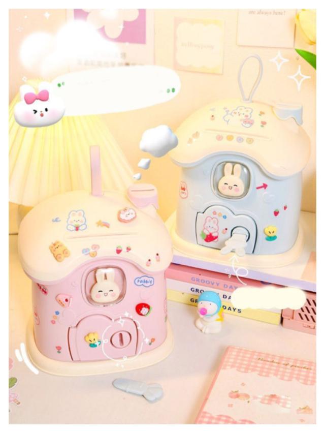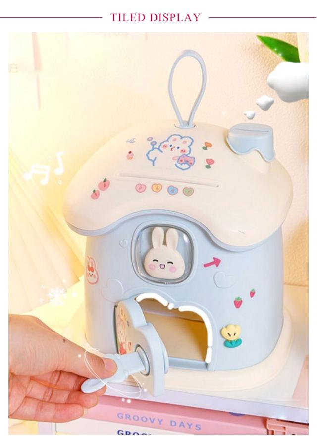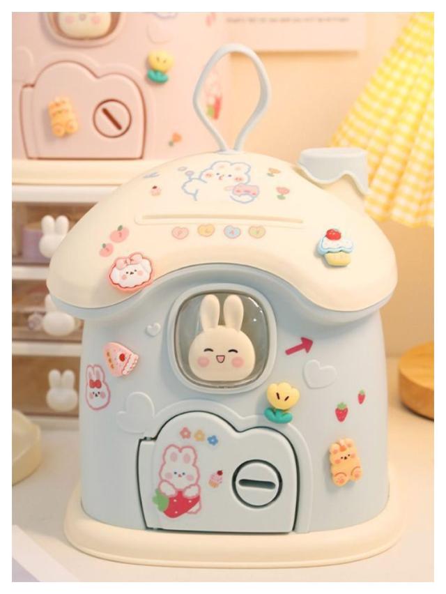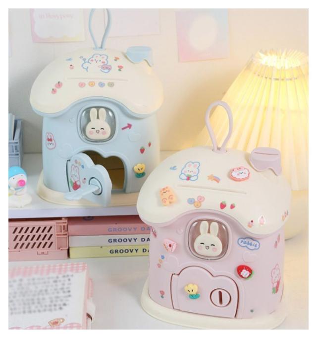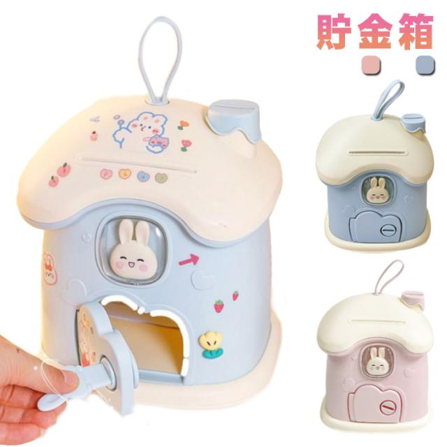 貯金箱 小屋型 きのこの家 鍵付き プラスチック 小銭投入ボックス 手提げ ミニ金庫 大人 子供 こども 小銭 ストック おしゃれ 置き物 インテリア おしゃれ かわいい 可愛い ウサギ 貯金 癒し プレゼント ギフト シール付き DIY