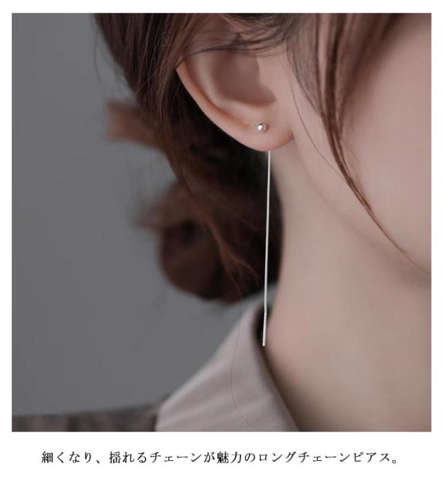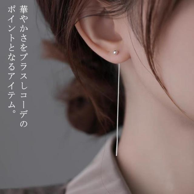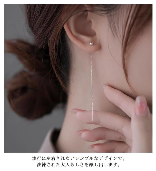 ピアス シルバー チェーンピアス ロングピアス 大人 レディース シンプル アメリカンピアス ボール ミニ 揺れる 両耳用 金属アレルギー対応 パーティー 結婚式 プレゼント 上品 きれいめ 高級感 送料無料