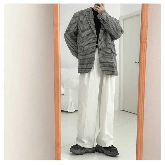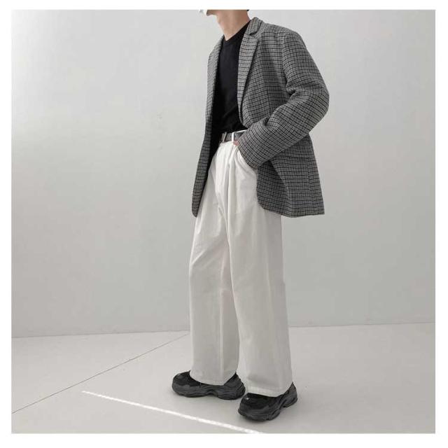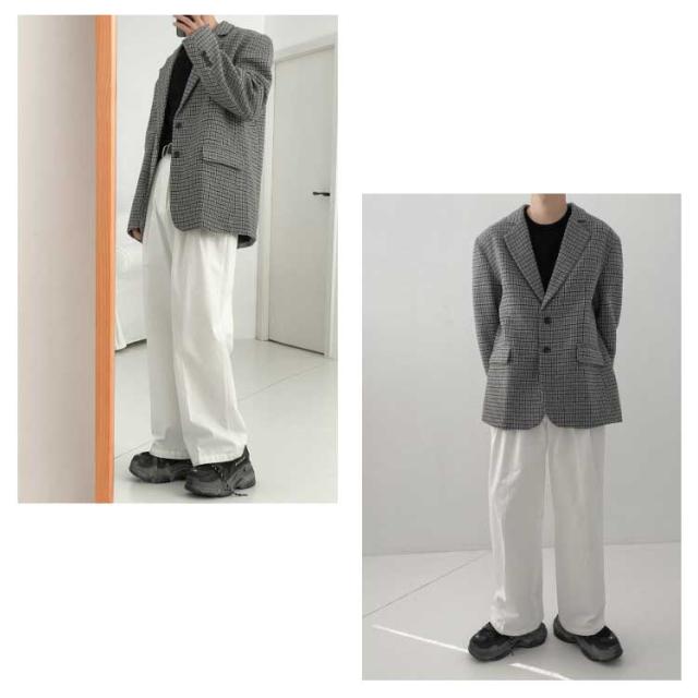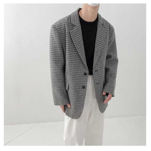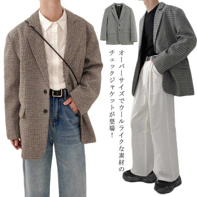テーラードジャケット チェック メンズ 2B ジャケット ウールライク ツイード 裏地付き カジュアルスーツ 秋 冬 アウター 春 スプリングコート ルーズシルエット ゆったり おしゃれ 2023 韓国ファッション【送料無料】