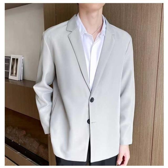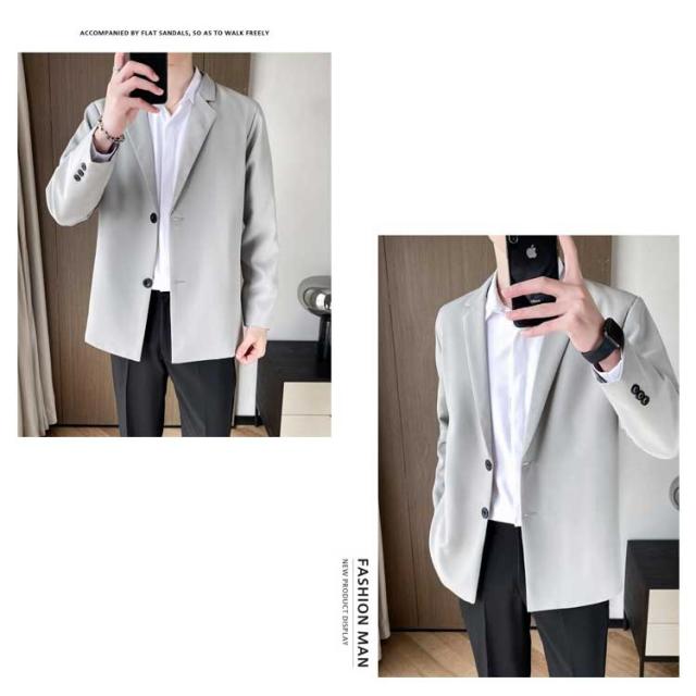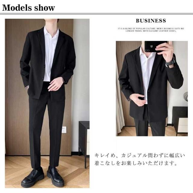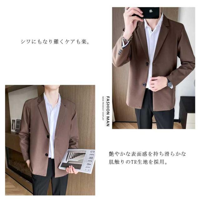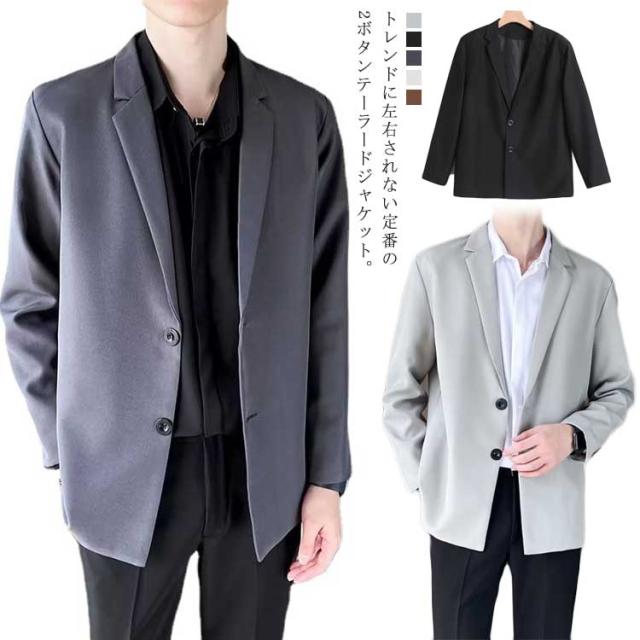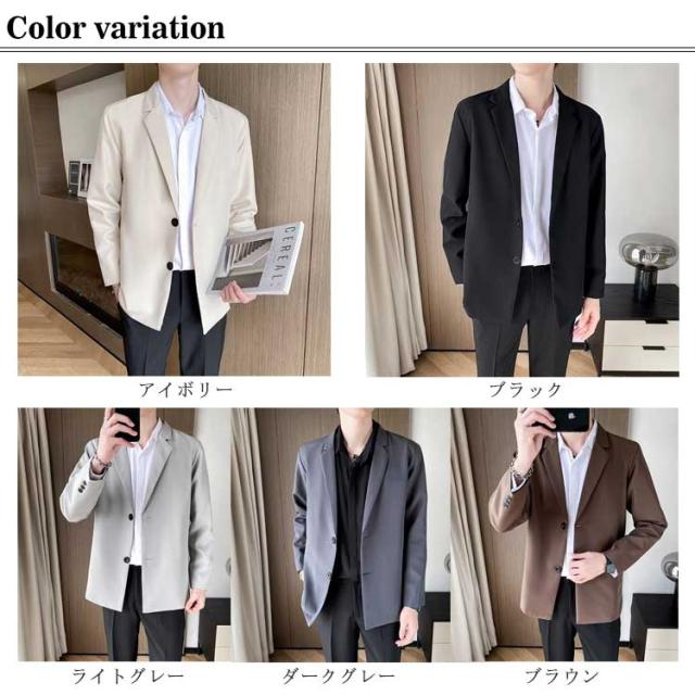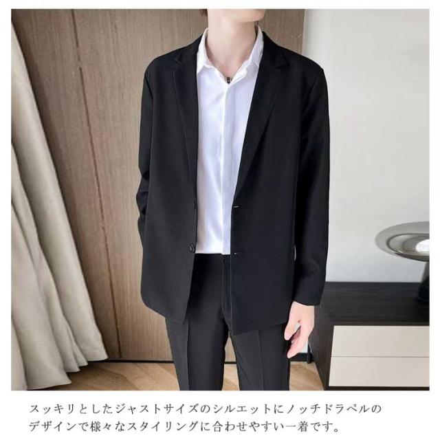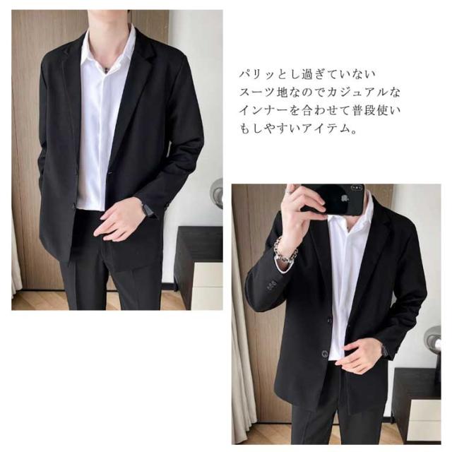 カジュアルスーツ メンズ テーラードジャケット スーツ生地 2つボタン 裏地付き 薄手 秋 春 アウター ジャストサイズ ミドル丈 スーツジャケット テレワーク ビジネス カジュアル 無地 シンプル 着回し【送料無料】