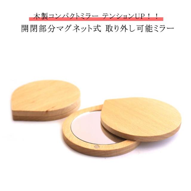 | 木製コンパクトミラー テンションUP!! 開閉部分マグネット式 取り外し可能ミラー | |