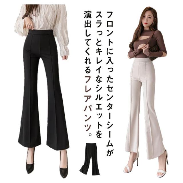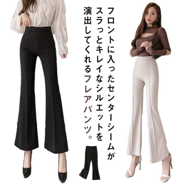 送料無料 ストレッチ フレアパンツ センタープレス ペンシルパンツ レディース パンツ スラックス 無地 ハイウエスト ウエストゴム ストレート ブーツカット ロングパンツ 美脚パンツ パンツドレス オフィスカジュアル 通勤