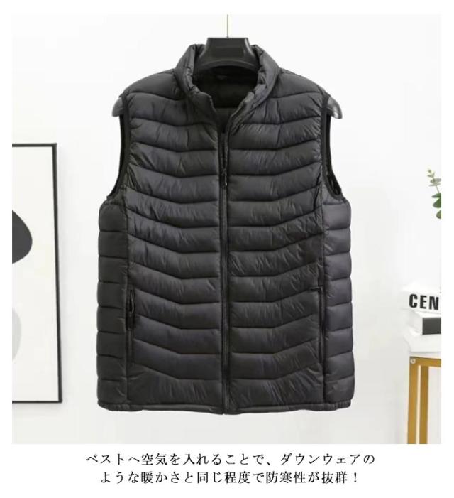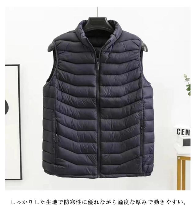 ダウンベスト メンズ スタンドカラー 暖か 軽量 防寒 中綿ベスト アウトドア 秋冬 ライトダウン ダウンジャケット 中綿 フェイクダウン ノースリー ブジャケット おしゃれ インナーベスト 無地 カジュアル 秋 冬 大人 男性