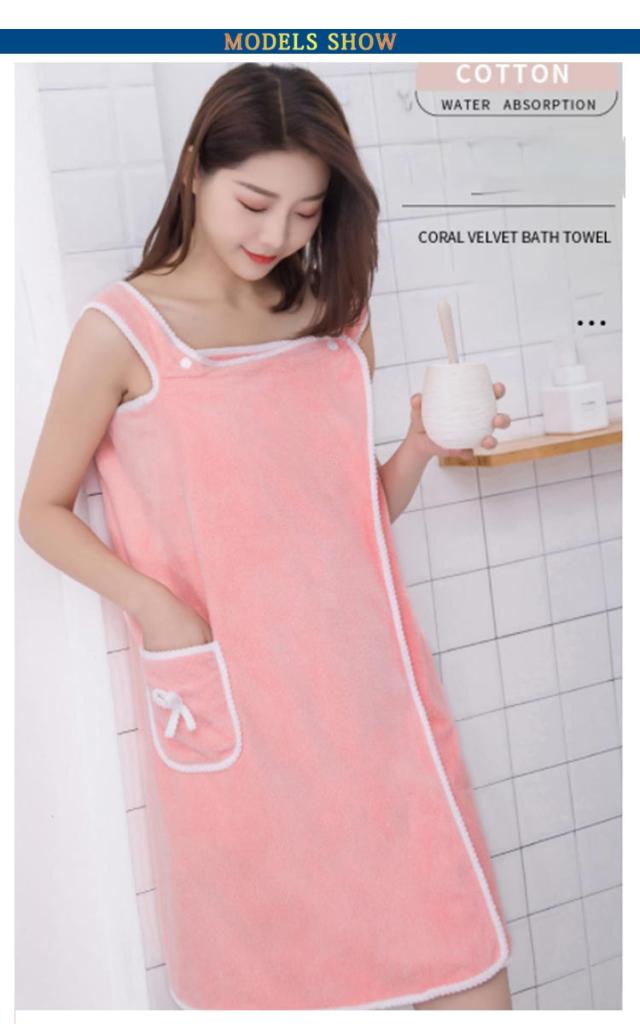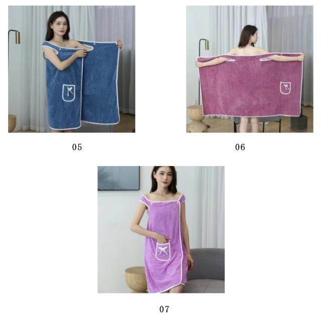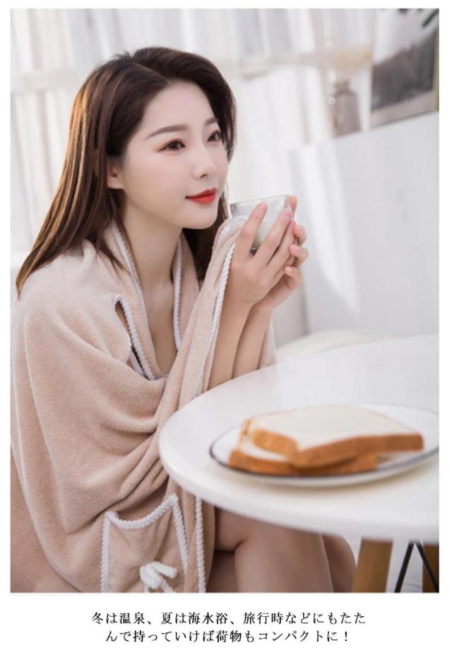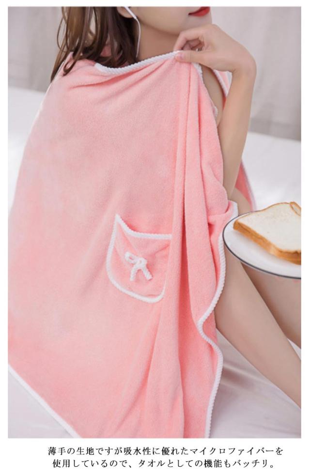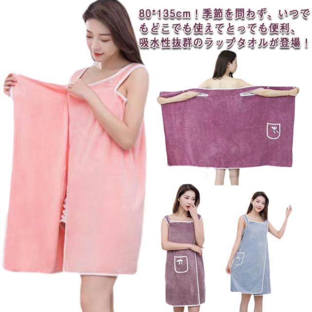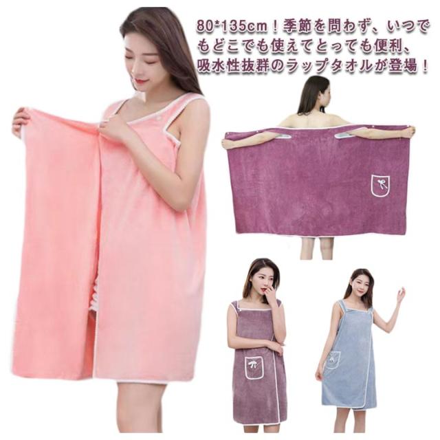 ラップタオル 大判 80*135cm 着るバスタオル バスタオル 肩紐 胸元ボタン 巻きタオル バスローブ タオルワンピース 大人用 レディース 女性 ポケット付き 吸水 速乾 薄手 軽量 可愛い 海水浴 バスタイム 風呂上がり 水泳 旅行 お泊り プール 送料無料