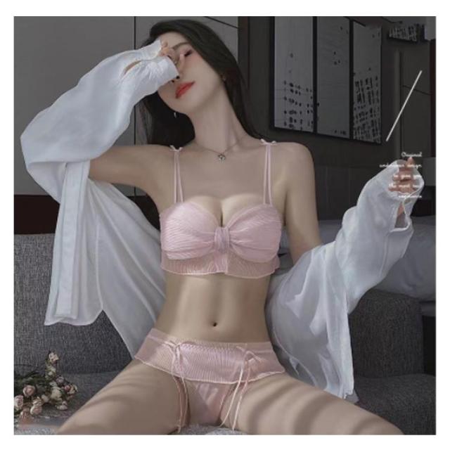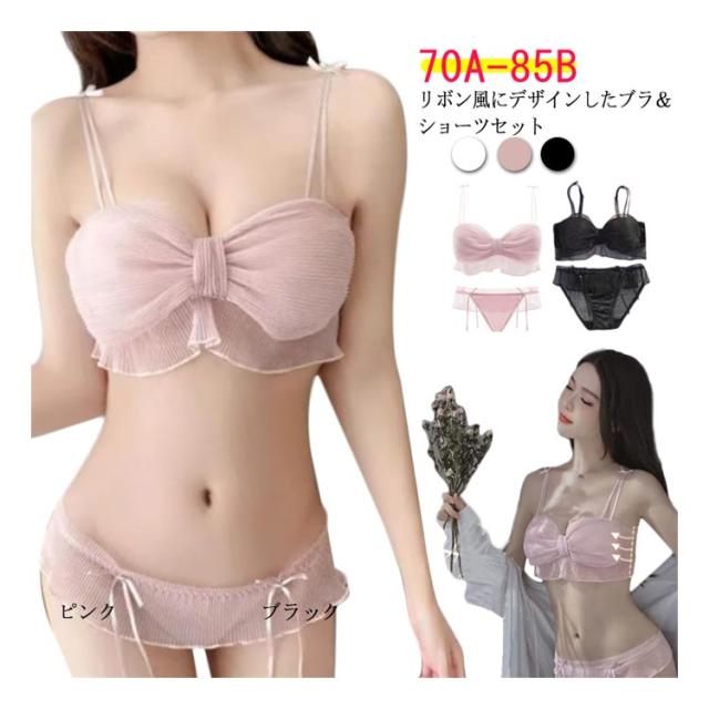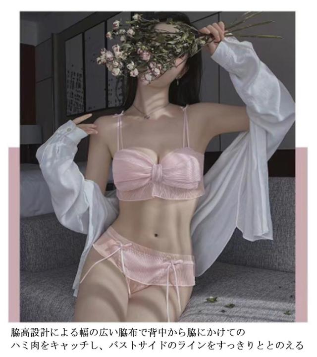 ブラ ショーツ セット リボン型 チュール ノンワイヤー ブラ 脇肉 脇高 ブラジャー 上下セット 胸を小さく見せるブラ 痩せブラ 胸が小さく見えるブラ 大きいサイズ 締め付けない かわいい 脇高 補正下着 痛くない インナー 下着 送料無料