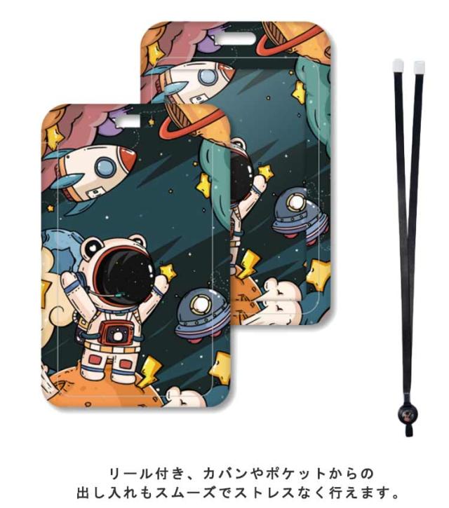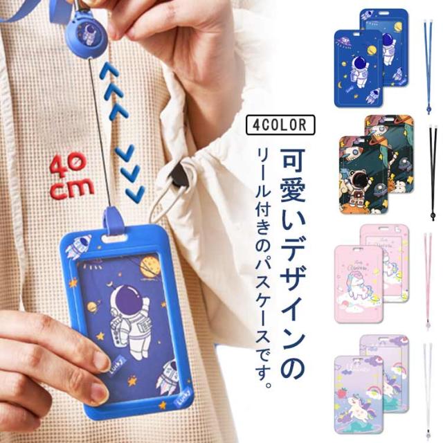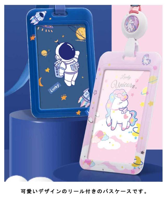 パスケース リール付き 伸びる 定期入れ 定期ケース 電車 ストラップ 可愛い 首掛け ICカード キーリング 宇宙飛行士 ユニコーン カードホルダー カード入れ 通園 通学 学生証 プレゼント イベント 送料無料