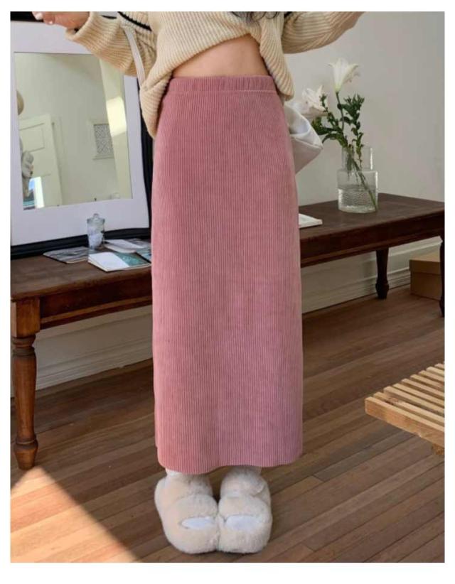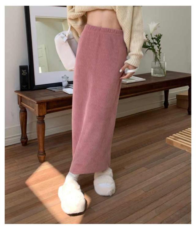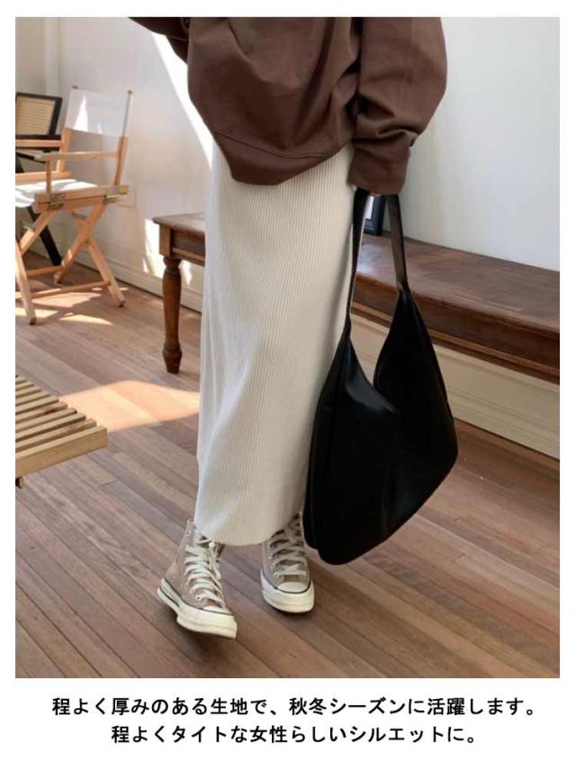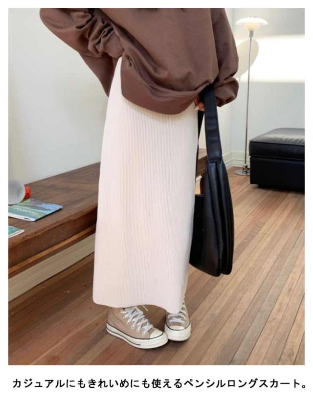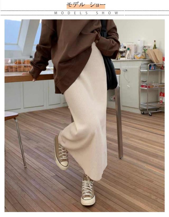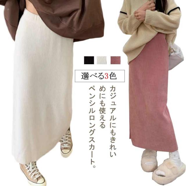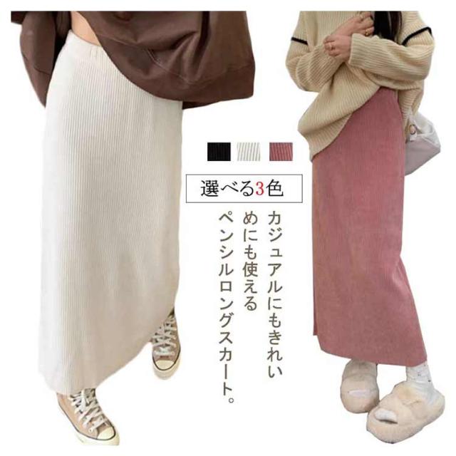スカート レディース 秋冬 タイトスカート ストレッチ ミモレ丈 Iライン ロングスカート リブスカート ウエストゴム 秋冬 ボトムス お洒落 キレイめ シンプル 着痩せ 暖かい 送料無料