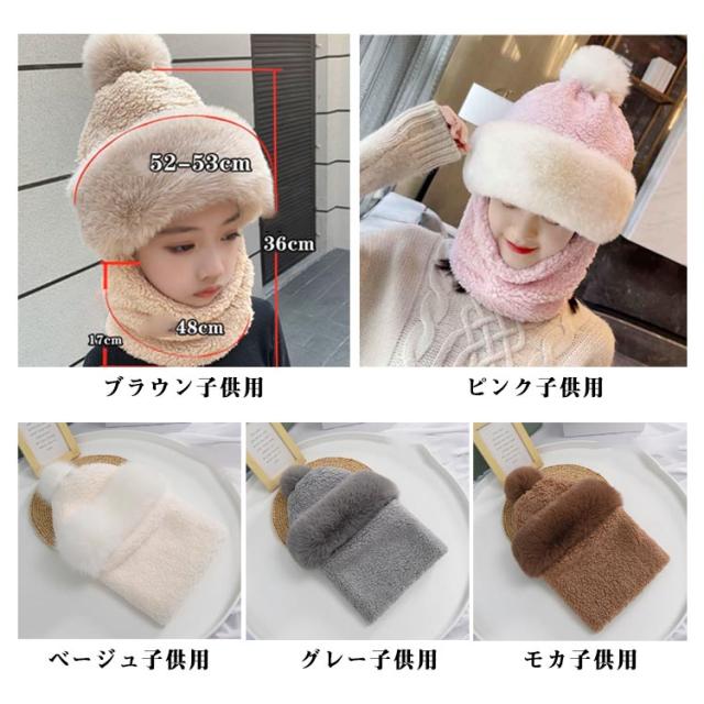 2点セット 秋 冬 ネックウォーマー 帽子 防寒 大人用 子供用 ニットキャップ キャップ ふわふわ もこもこ ふんわり あったか 無地 厚手 シンプル かわいい おしゃれ 小顔効果 親子タイプ
