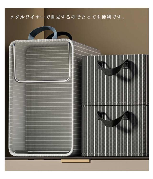 | 【商品名】衣類収納ケース 【サイズ】 F(47*28*20cm) 【素材】オックスフォード布、メタルワイヤー 【特徴】 メタルワイヤーで自立するのでとっても便利です。 様々な場所で活躍する収納ケース!クローゼット収納としてはもちろん、リビング収納としても便利にお使いいただけます。お子様のおもちゃ収納としてもおすすめです。 蓋なしタイプなので中身の出し入れが簡単です。 持ち手がついているので、持ち運びに便利。 使わないときはコンパクトに折りたためるので、わずかな隙間に収納可能。 北欧風はもちろん、和モダン、カフェ風、洋室、和室にも似合うオシャレな収納ボックス。 | |