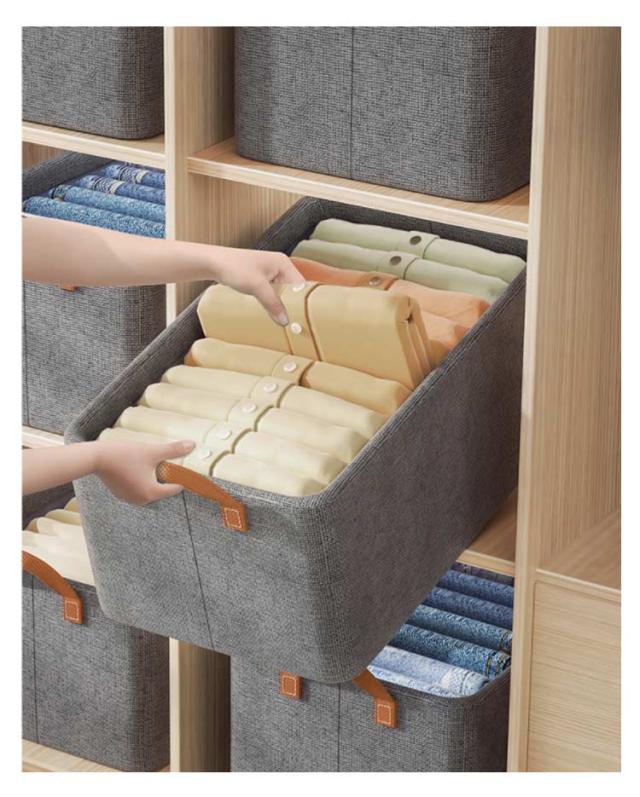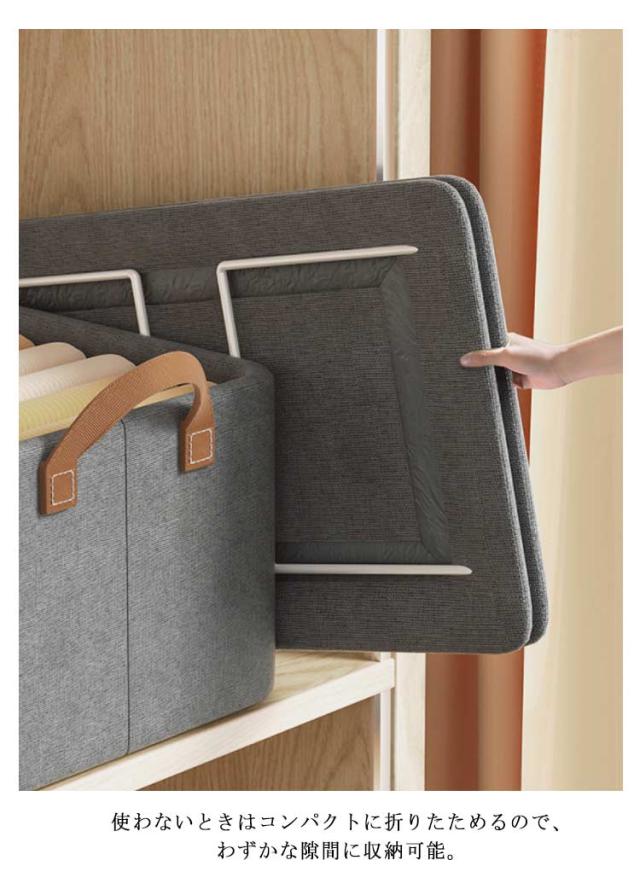 | 【商品名】衣類収納ケース 【サイズ】 F(47*28*20cm) 【素材】麻みたいなポリエステル生地、メタルワイヤー 【特徴】 麻みたいなポリエステル生地を使用し、麻よりコスパが良い。 メタルワイヤーで自立するのでとっても便利です。 様々な場所で活躍する収納ケース!クローゼット収納としてはもちろん、リビング収納としても便利にお使いいただけます。お子様のおもちゃ収納としてもおすすめです。 蓋なしタイプなので中身の出し入れが簡単です。 持ち手がついているので、持ち運びに便利。 使わないときはコンパクトに折りたためるので、わずかな隙間に収納可能。 北欧風はもちろん、和モダン、カフェ風、洋室、和室にも似合うオシャレな収納ボックス。 | |