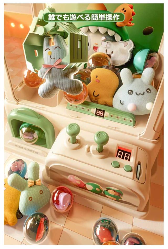| サイズについての説明 | ウサギ ダイナソーセット内容物:可愛い人形*10、ガチャポン*10、ゲーム通貨*10、ドライバー*1 ゲームセンターのあの雰囲気が手軽に楽しめちゃう、クレーンキャッチャーのご案内です 飴やお菓子など、好きなものを入れて楽しんでください |