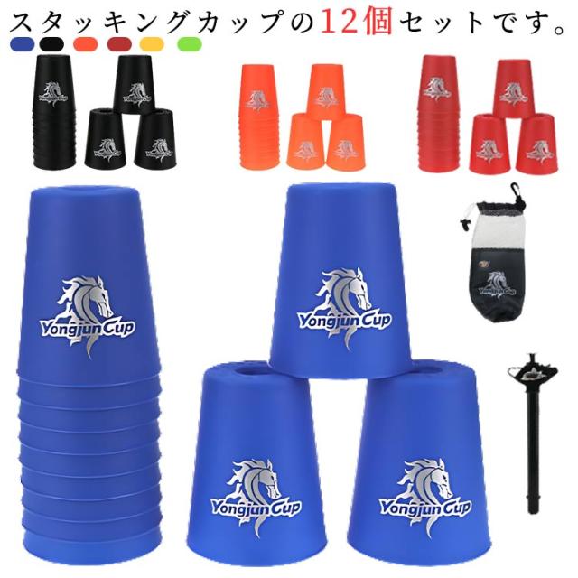 スタックスカップ 12個セット 手提げ棒 収納袋付き スポーツスタッキング カップ スピードスタックス 飛重ねカップ 穴あき 速重ね 競技用 練習用 トレーニング 初心者向け 上級者