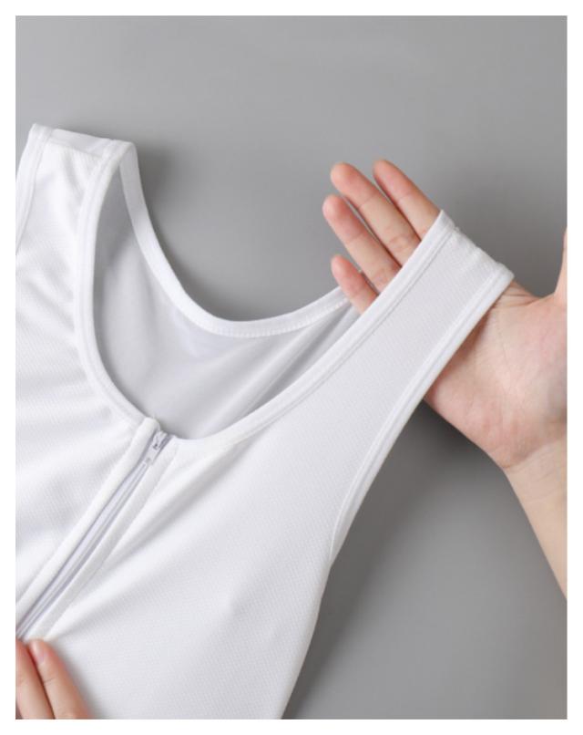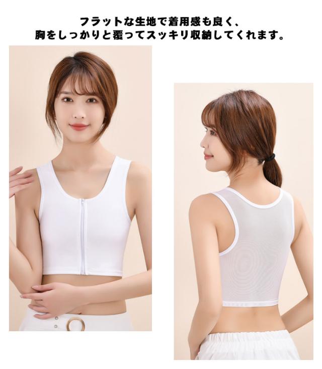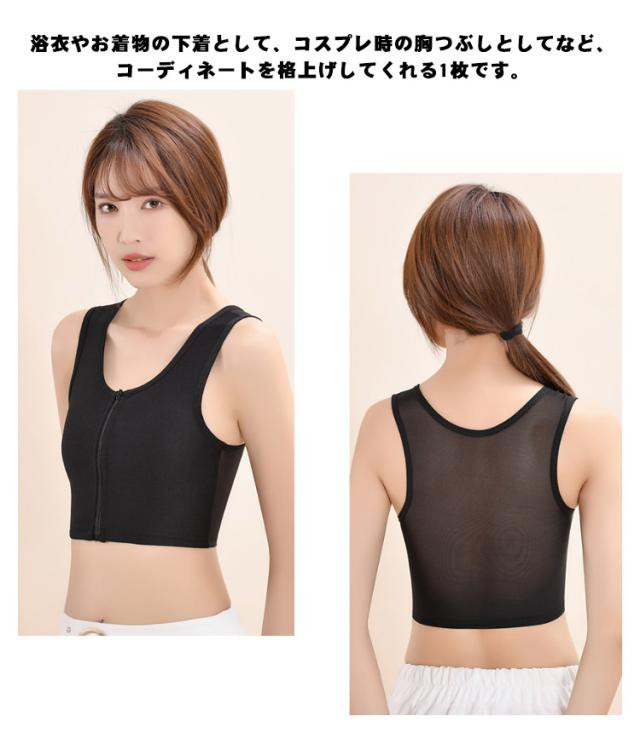 | 胸をしっかり潰す!! フラットな生地で、着心地もいい。 苦しくないのにしっかり胸を抑えるタンクトップタイプのスポーティーインナ。 背中には通気性に優れたメッシュ素材を使用。 フラットな生地で着用感も良く、胸をしっかりと覆ってスッキリ収納してくれます。 さらに、肩紐が広めのタンクトップタイプなので、スポーツ時にぴったりです。 フロントファスナー仕様ので使い勝手が良いです。 バストをペタっとフラットにメイクするから、ボリュームが気になる方や、 浴衣やお着物の下着として、コスプレ時の胸つぶしとしてなど、コーディネートを格上げしてくれる1枚です。 | |