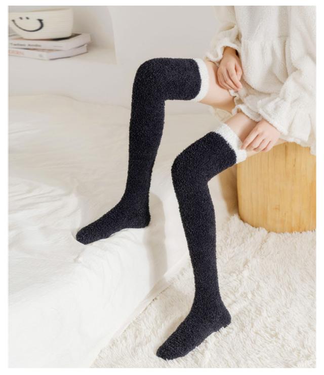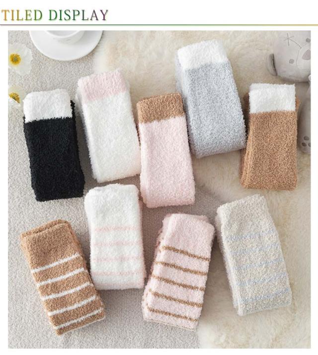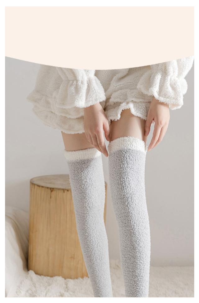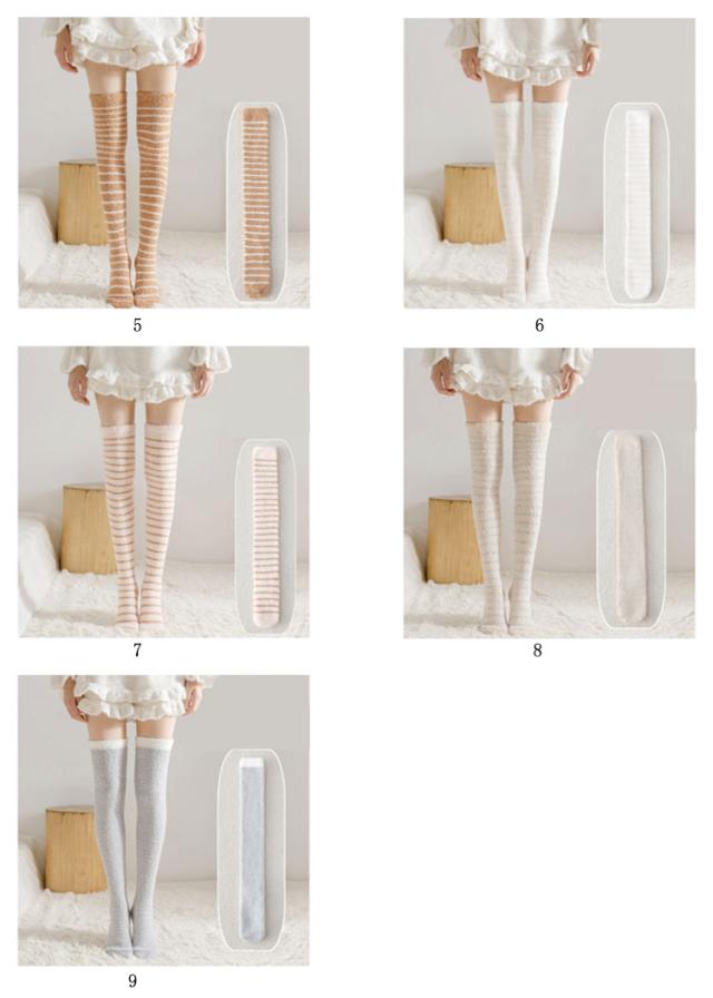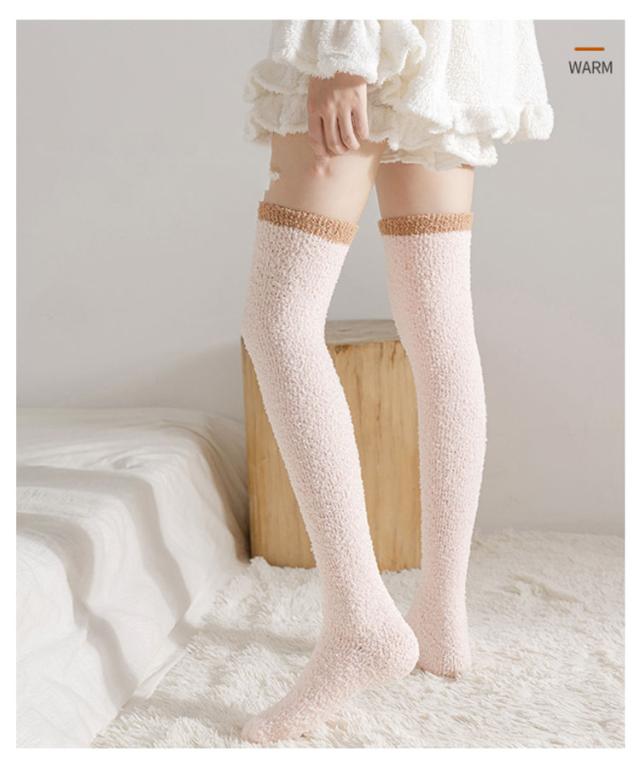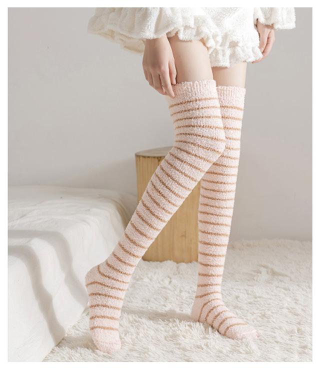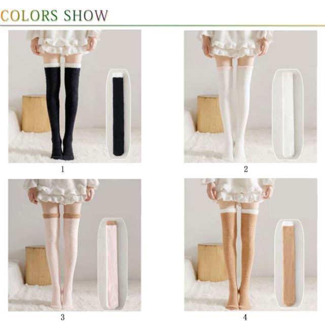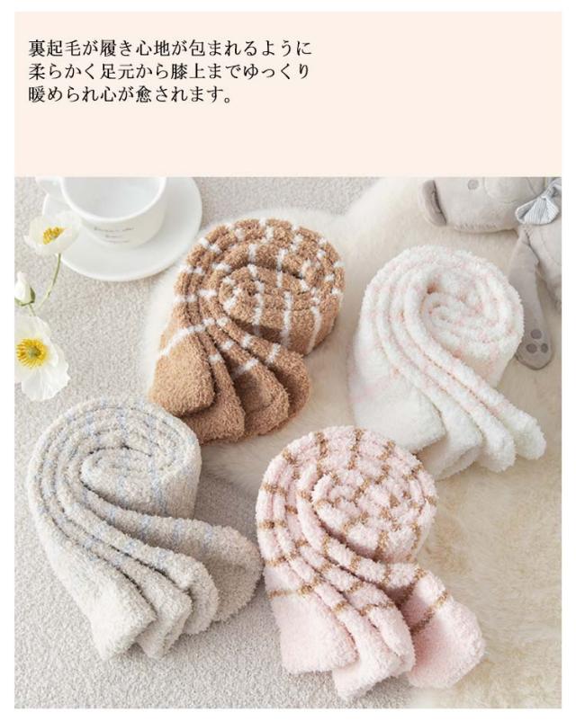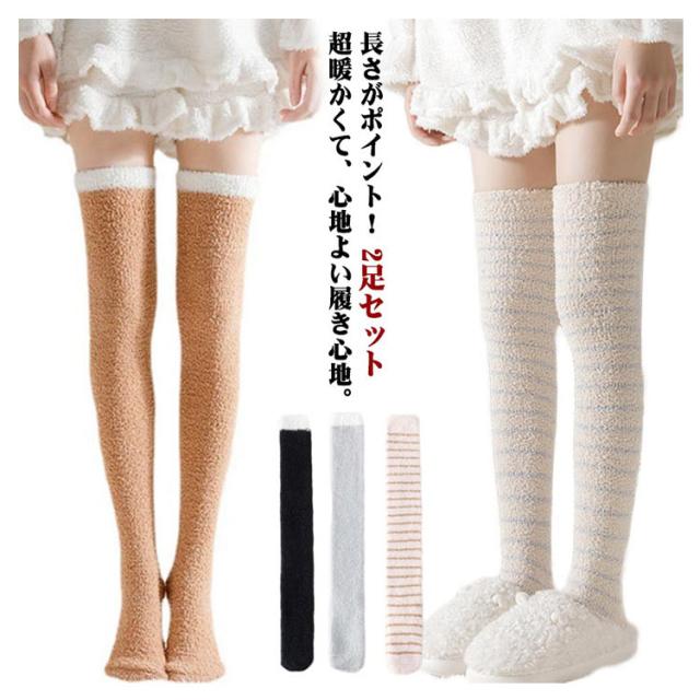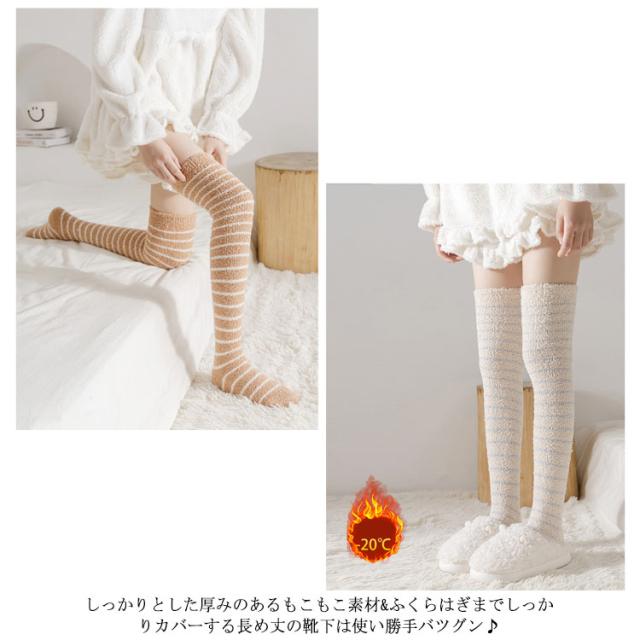 2足セット ルームソックス もこもこ 靴下 ソックス レディース ハイソックス ロングソックス ソックス ニーハイソックス ふわふわ 可愛い 暖かい ボーダー プレゼント ギフト 冷房対策 冷え対策 温活 足冷え対策 冬 秋 送料無料