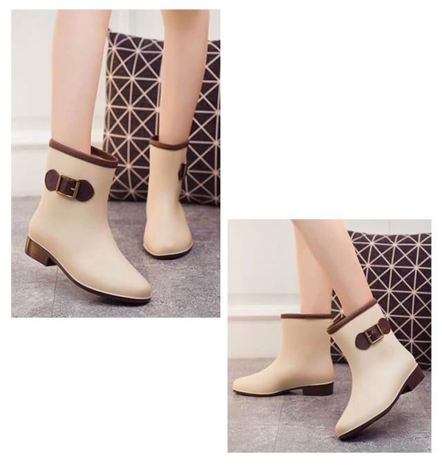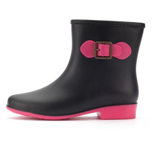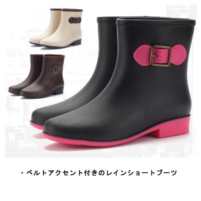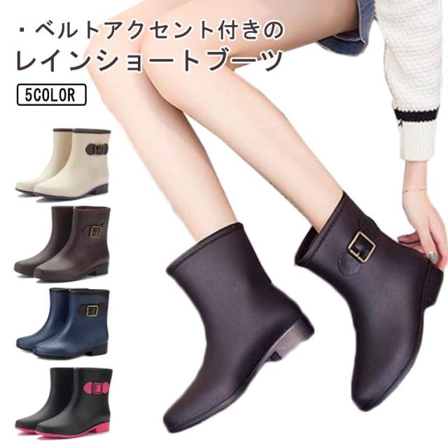 レインブーツ ショートブーツ レディース 防水ブーツ レインシューズ 靴 雨靴 長靴 ベルトアクセント付き 女性 滑りにくい 2.5cmヒール 配色切替 雨具 レイングッズ 歩きやすい レジャー 通勤 おしゃれ 全5色