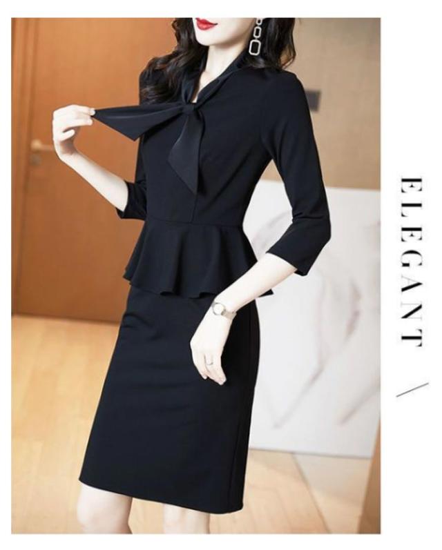 フォーマル ワンピース 卒業式スーツ 一体型セットアップ リボン ボウタイ ひざ丈スカート フレアワンピース ドレス 卒業式 入学式 入園式 レディース 結婚式 二次会 ママ 40代 30代 母 長袖 ブラック 黒 スーツ 送料無料 レイヤードトップスがかわいい重ね着風ワンピース