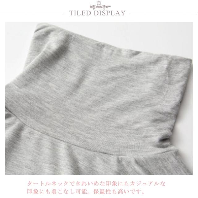 | カップ付きタートルネックTシャツ タートルネックできれいめな印象にもカジュアルな印象にも着こなし可能。保温性も高いです。 伸縮性も優れており、快適な着心地。 ふんわりと優しい肌触りのカップ付きで、ワイヤーもないからノンストレス! アンダーゴムが付いていてズレる心配もなく、バストをしっかりサポートしてくれます。 1枚ではもちろん、アウターなどのインナーアイテムとしても着用可能。 合わせるボトムスを選ばない万能なアイテムです。 | |