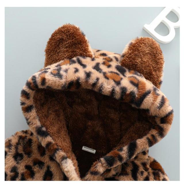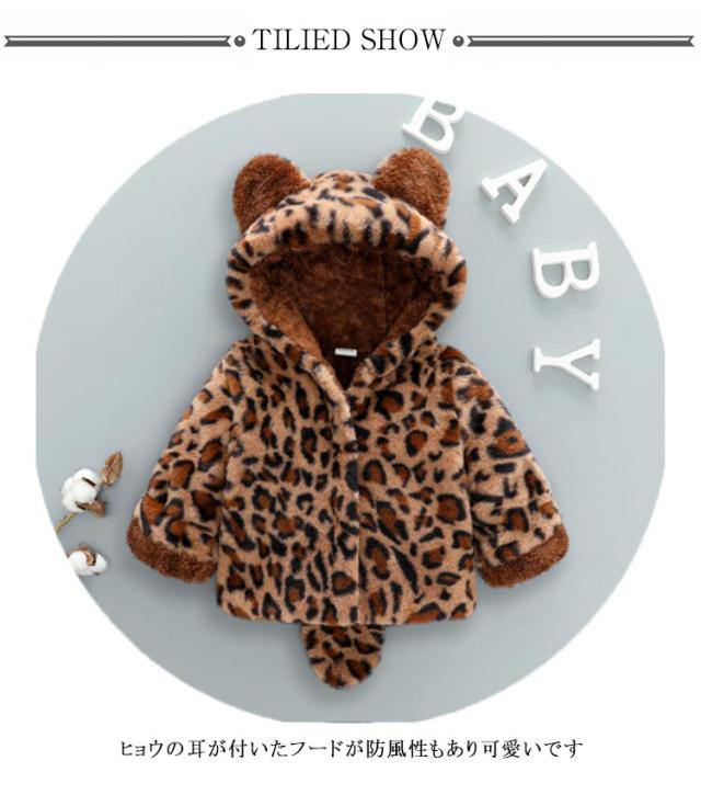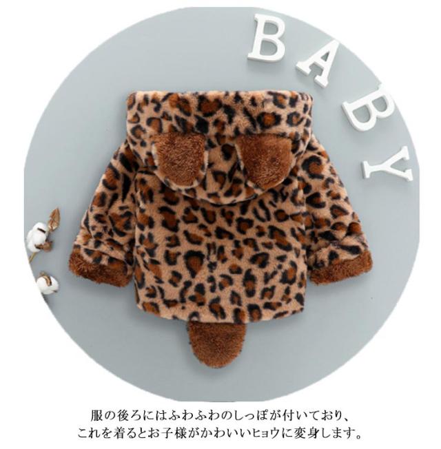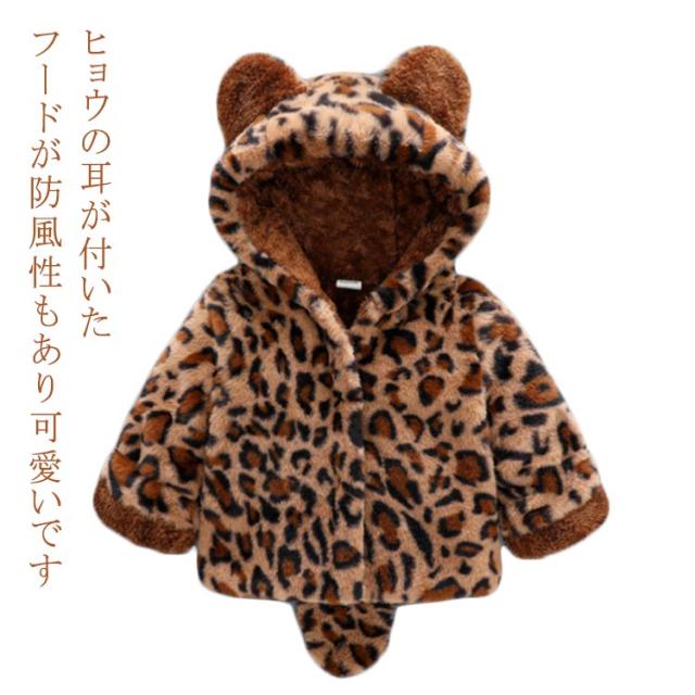 | 柔らかい質感、肌に優しく快適です ヒョウの耳が付いたフードが防風性もあり可愛いです 服の後ろにはふわふわのしっぽが付いており、これを着るとお子様がかわいいヒョウに変身します。 楽しくて実用的な子供服 | |