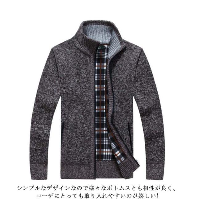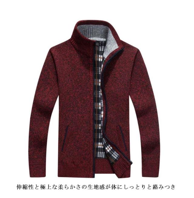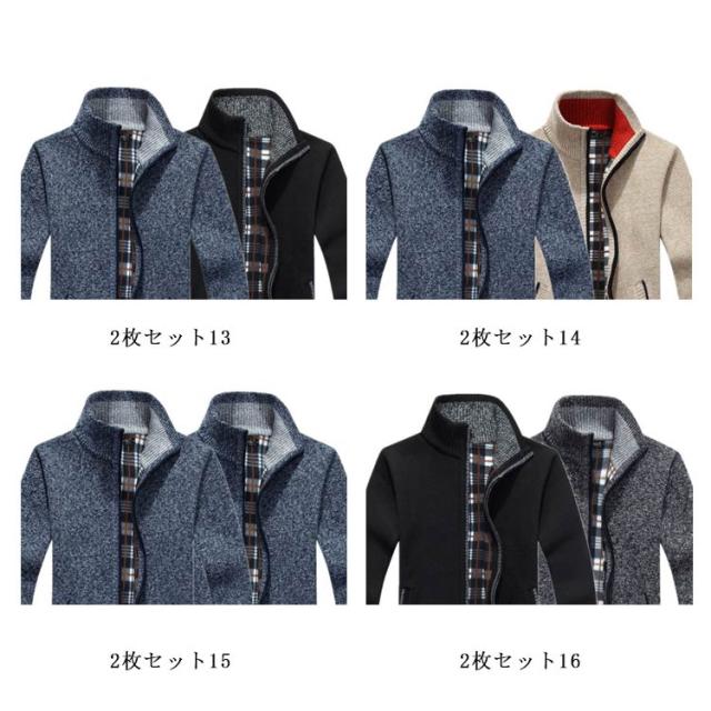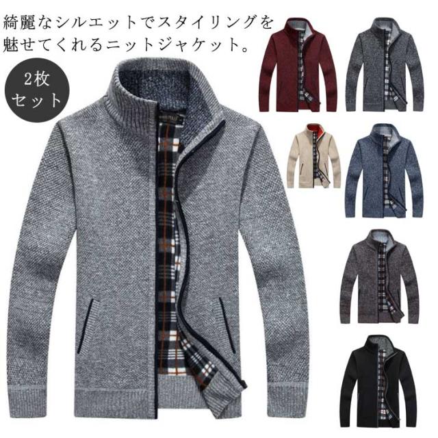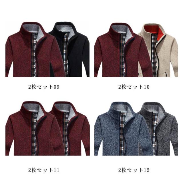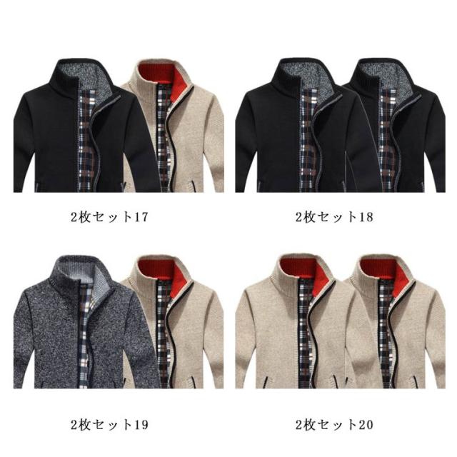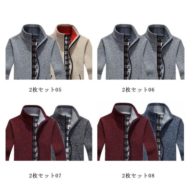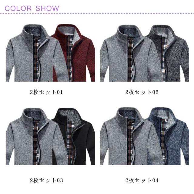 2枚セット カーディガン メンズ ジップアップ 春秋 秋冬 前開き ニットカーディガン 裏起毛 ニットジャケット ニットセーター 長袖 トップス スタンドカラー 防寒 厚手 アウター カジュアル