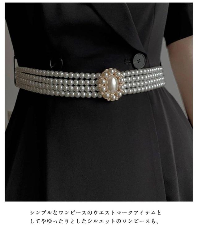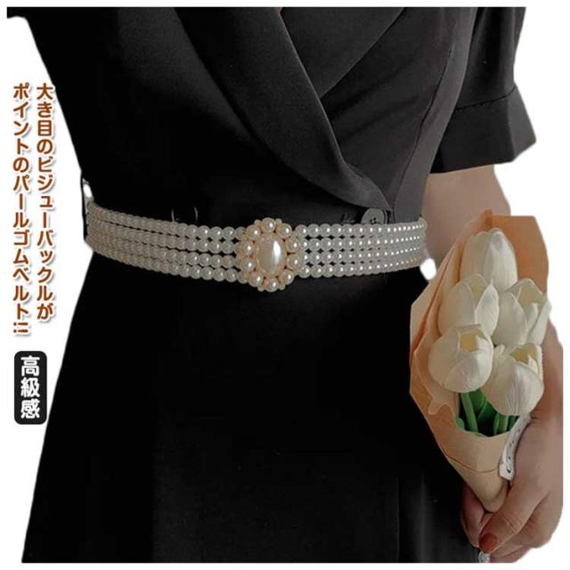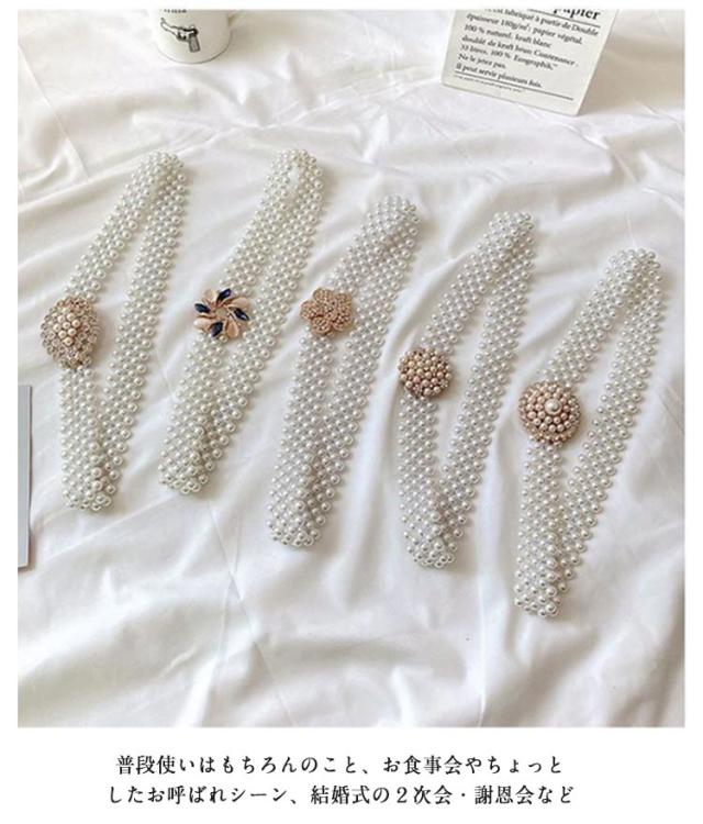 ゴムベルト パールベルト レディース おしゃれ ウエストマーク 結婚式 二次会 パーティー 謝恩会 上品 カジュアル 可愛い パール ベルト ゴージャス 高級感 アクセサリー