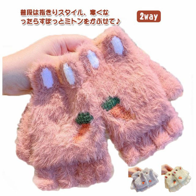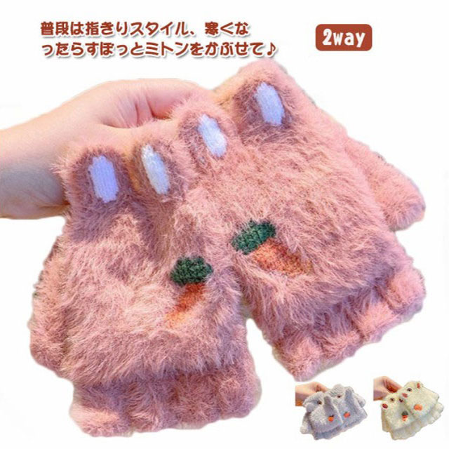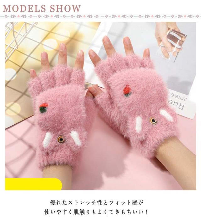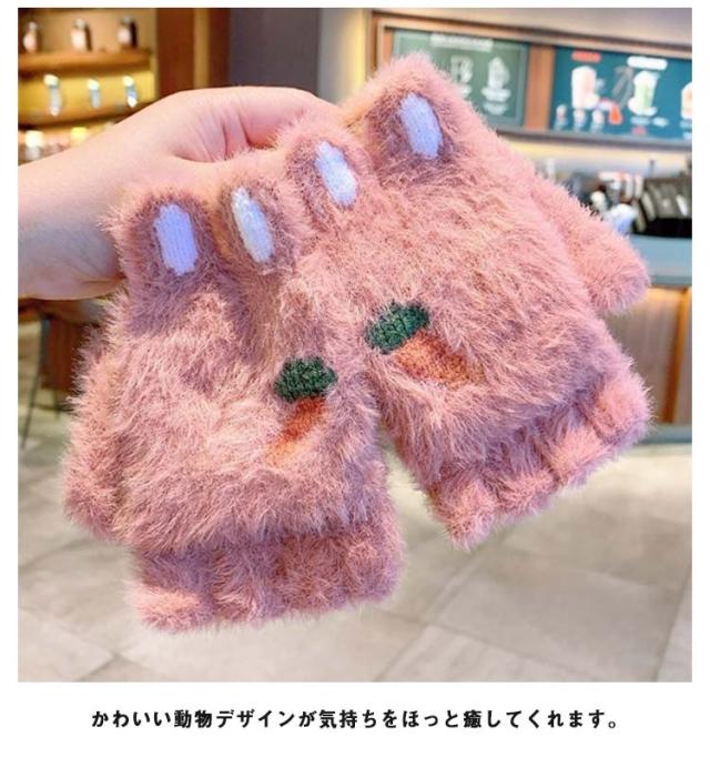 ふわふわ 手袋 子供 動物 うさぎ 猫 可愛い ミトン 指なし 手ぶくろ 女の子 男の子 もこもこ 暖かい フィンガーレス スマホ対応 ニット ハンドウォーマー グローブ キッズ 大人 かわいい 冬 防寒グッズ