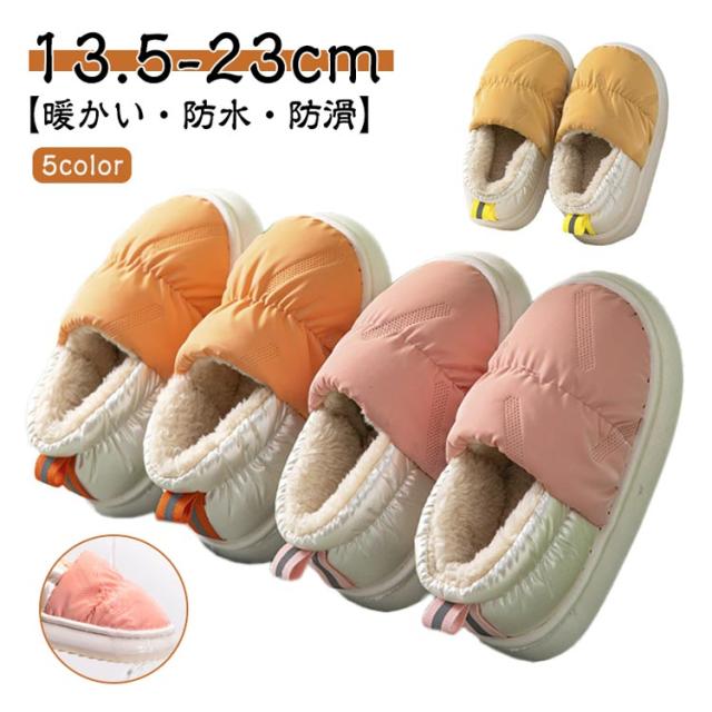 キッズ ルームシューズ 子供用スリッパ 冬用 かかと付き 防水 裏起毛 ボア もこもこ 滑り止め あったか 室内履き 暖かい こどもスリッパ 子ども用ルームシューズ 防寒 かわいい フリース 男の子 女の子 部屋履き