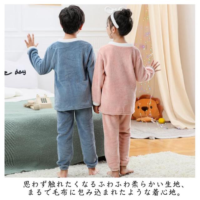 こどもパジャマ 冬用 あったかパジャマ キッズ もこもこ 防寒 パジャマ セットアップ ルームウェア フランネル 部屋着 可愛い モコモコ 子供 パジャマ 暖かい 上下セット 100 110 120 130 140 150cm 裏起毛 厚手 ジュニア ユニセックス 寝巻き