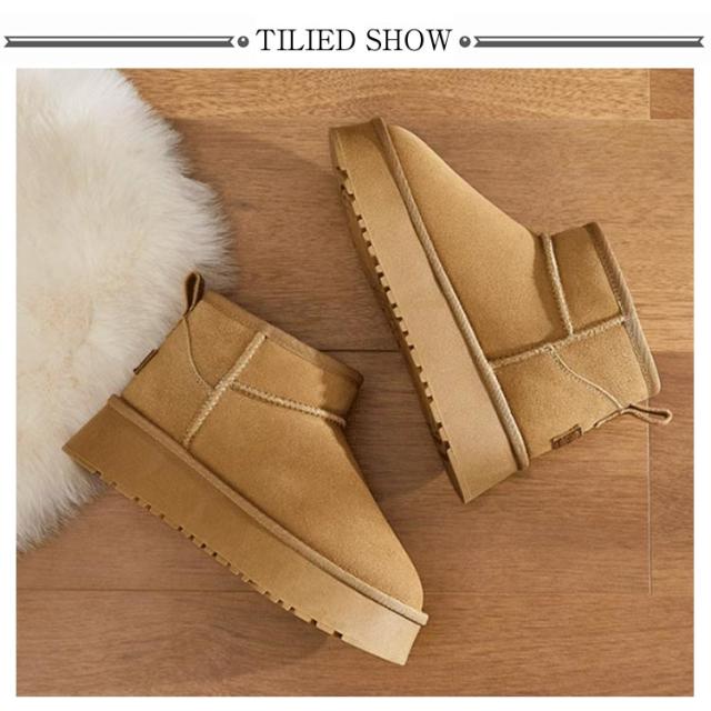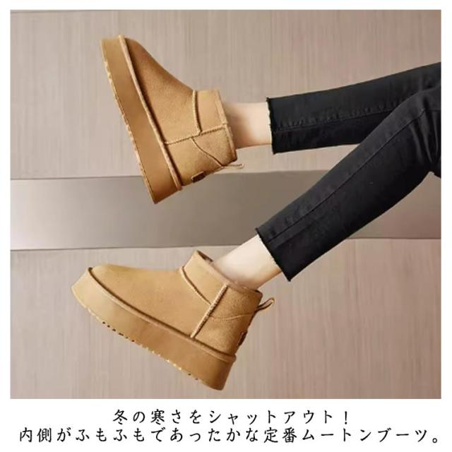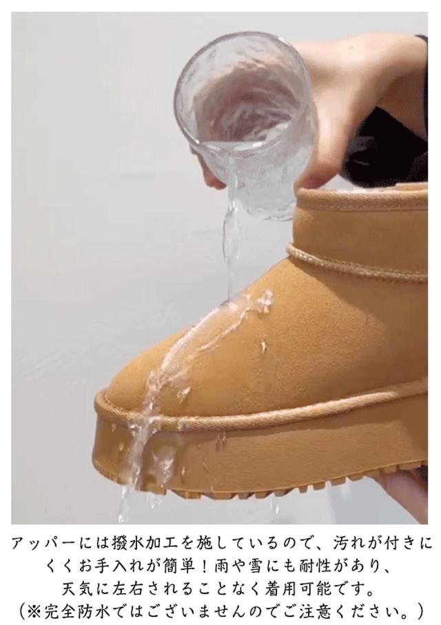 撥水 ムートン 厚底ブーツ ムートン 8cm身長UP ボアブーツ エコファー ブーツ 厚底靴 フラットヒール 痛くない 防滑 保温 防寒靴 レディース インヒール ショートブーツ 裏起毛 冬靴 秋 冬 靴 シークレットシューズ