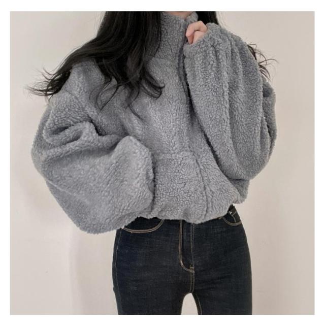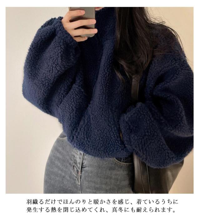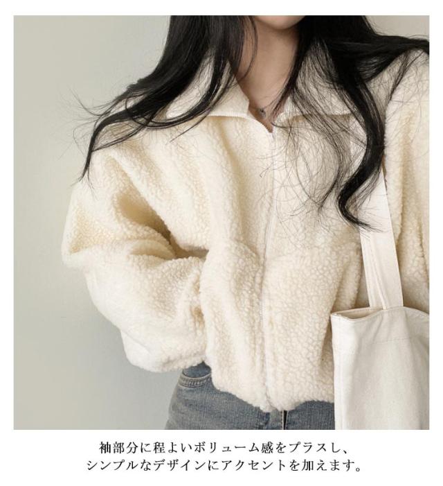 ブルゾン ボアジャケット レディース 長袖 ジップアップ ファスナー 厚手 羽織り 前開き 冬用 秋服 冬服 スタンドカラートップス アウター あったか 防寒 秋 冬 ショート丈 おしゃれ カジュアル 無地 もこもこ 送料無料