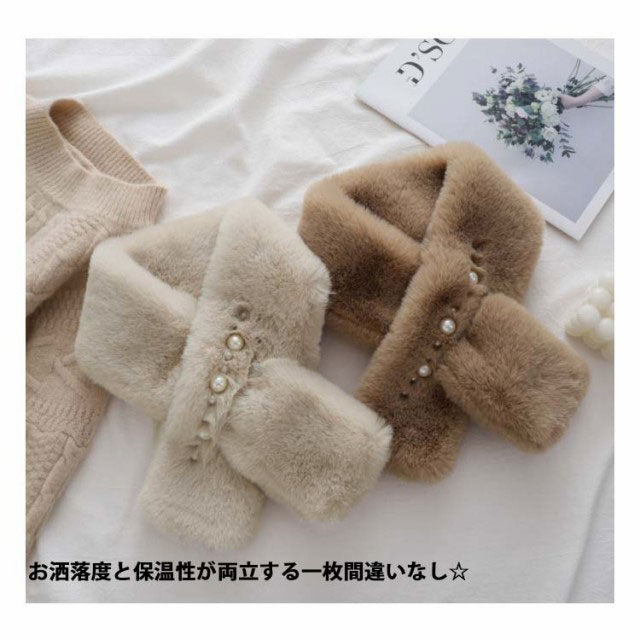 ファーティペット ネックウォーマー ファーマフラー ティペット レディース ファー ふわふわ もこもこ パール付き 差し込み ティペット ボリューム感 防寒 あったか 暖かい 上品 ふんわり お洒落 大人 可愛い きれいめ お出かけ 通勤 普段使い フォーマル