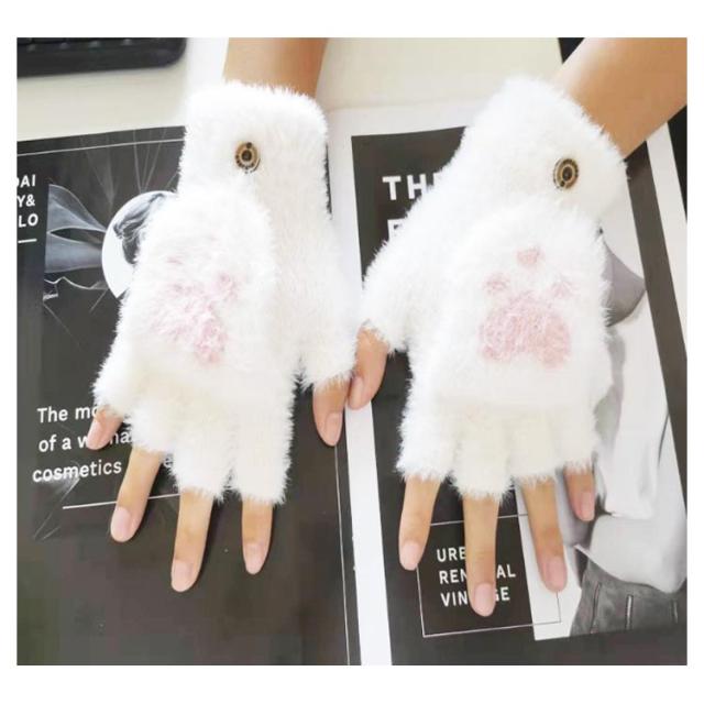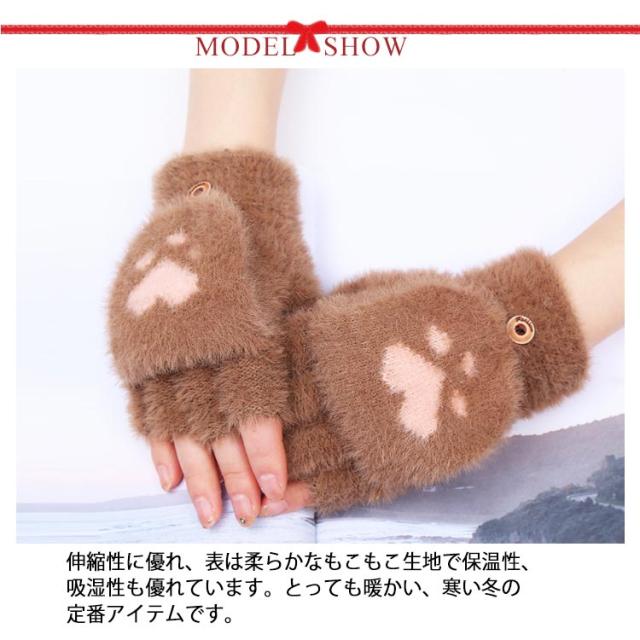 ファー手袋 ふわふわ ファー ミトン グローブ レディース ハート柄 手袋 指なし スマホ対応 ハンドウォーマー 指紋認証 暖か もこもこ 裏起毛 あったか スマホ 防寒 指抜き ギフト 秋冬 女性 暖かい 自転車 送料無料