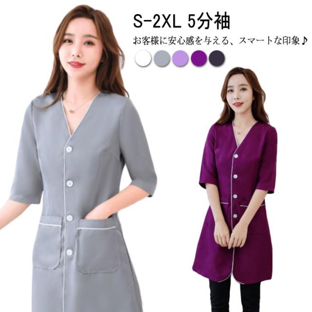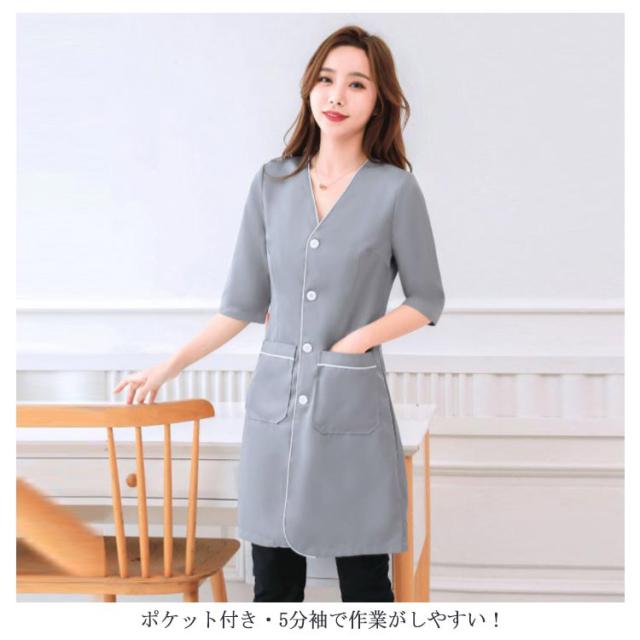 エステ 制服 ユニフォーム ワンピース 5分袖 サロン 送料無料 整体 おしゃれ 人気 かわいい 可愛い ネイビー 上品 大人 シンプル クリニック ナース服 医療白衣 白衣 女医