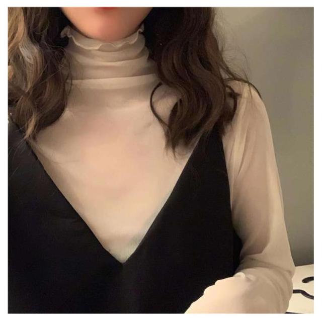 | 一枚は持っておきたい、トレンドのシアートップス。 透け感がレディムードを高め、旬な雰囲気を醸し出します。 首元・袖口・裾にはメロウフリルを施しており、細部まで手を抜かない可愛さ。 薄手なのでインナーとして着てもごわつきにくい。 トレンドのシアー素材でちょうどよい透け感。 柔らかなチュール素材を使用し、首元はハイネックでUV対策としても露出度調整にも◎ 伸縮性があり、締め付けのない程良いフィット感。 キャミやタンクの上に重ねてコーデの主役としても、レイヤードスタイルのインナーとしてもオススメです♪ 様々なスタイリングに活躍し、デイリーにもオケージョン対応にも◎ お手入れ簡単!おうちで洗える。 ネットに入れて洗濯機でそのまま洗えるので衛生的&お手入れ簡単◎ レイヤードに◎オールシーズン着回せる万能トップス。 | |