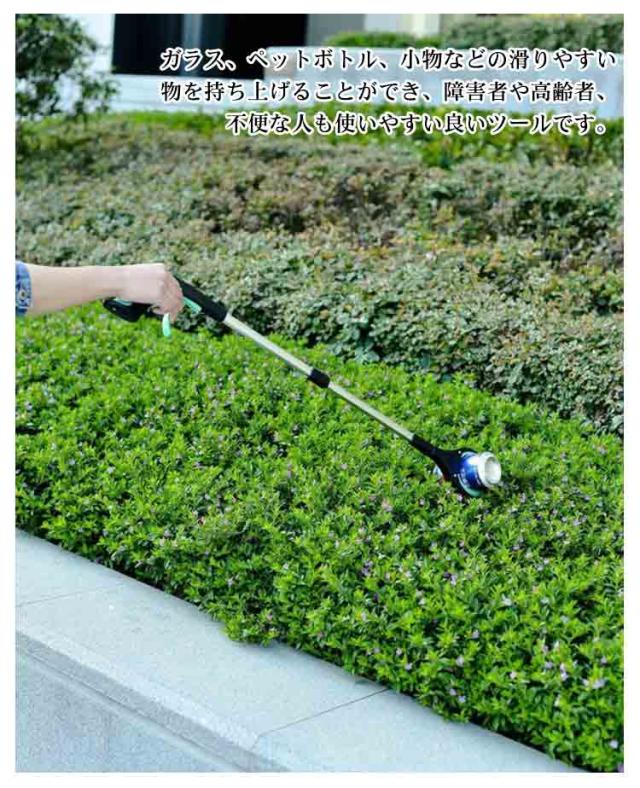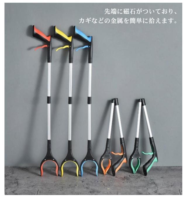 | 超軽量アルミ合金ボディで、軽くて使いやすいです。 ハンドルは握る感触が手の感触に近く、少し力で掴めますので、持ちやすいを実現。 先端に磁石がついており、カギなどの金属を簡単に拾えます。 腰が曲がらない、肩から腕が上がらない方に。 関節や膝や腰が曲がらずにものを取ることができ、お年寄りの方にも便利に使えるアイテムです。 ガラス、ペットボトル、小物などの滑りやすい物を持ち上げることができ、障害者や高齢者、不便な人も使いやすい良いツールです。 | |