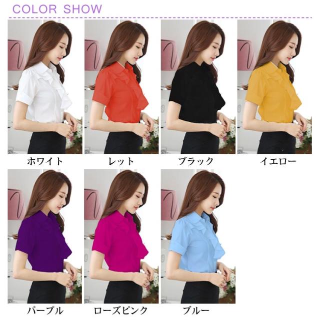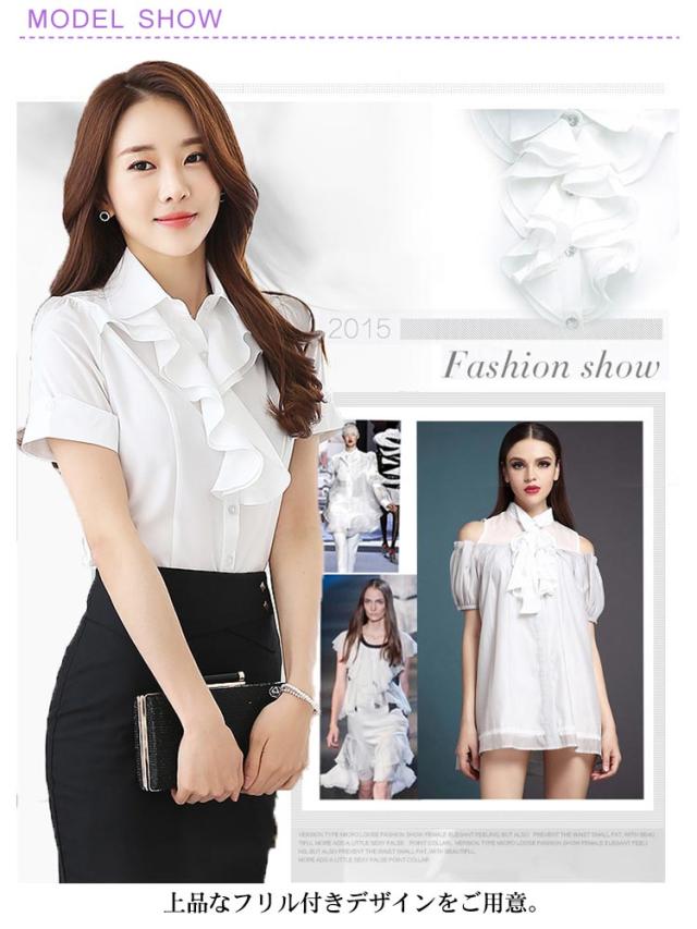 送料無料シャツ ブラウス フリルブラウス 半袖ブラウス フリル シフォン レディース フォーマルシャツ リクルート 大きいサイズ 黒 白 スーツ インナー トップス ビジネス OL オフィス 通勤 きれいめ オフィス カジュアル おしゃれ フォーマル