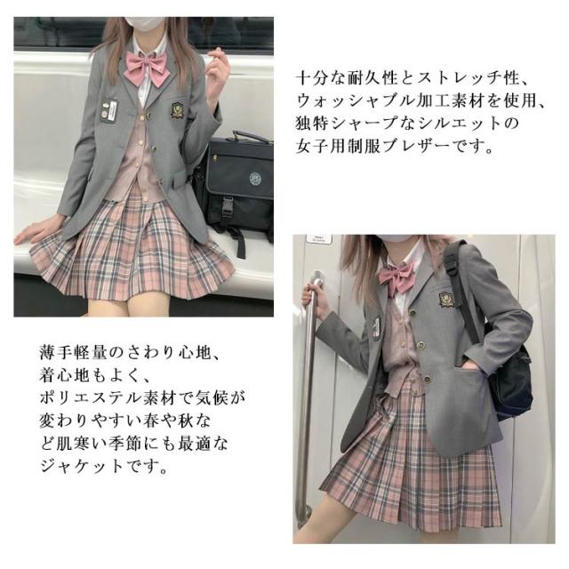 制服 女子高校生 5点セット スーツ セット 女の子 ブレザー制服 上下セット 中学生 高校生 学生服 女子高校生 制服 スクール制服 フォーマル コスプレ スカートスーツ ブレザー 長袖 シャツ リボン バッジ スカート セットアップ