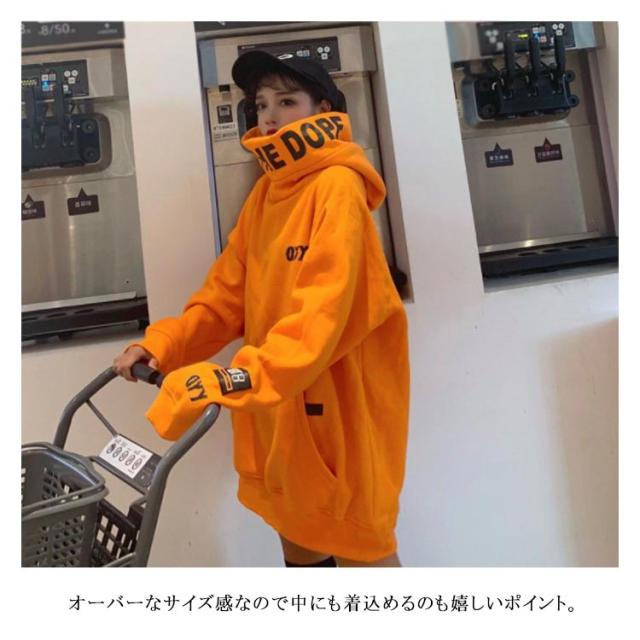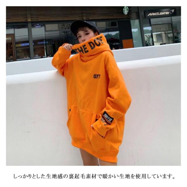 パーカー レディース プルオーバー フード付き 長袖 裏起毛 ハイネック ビックシルエット 女子 ゆったり カジュアル おしゃれ 大人可愛い 秋 冬 全2色