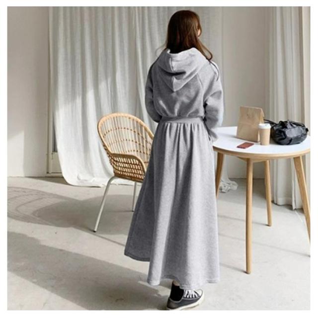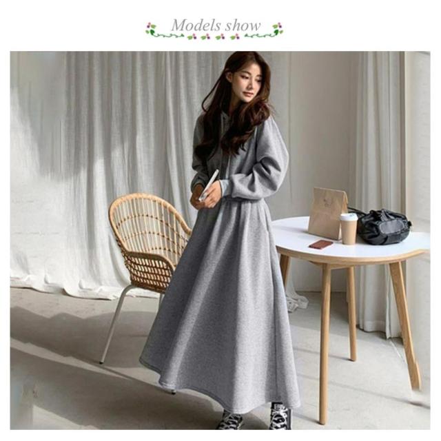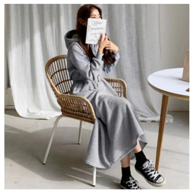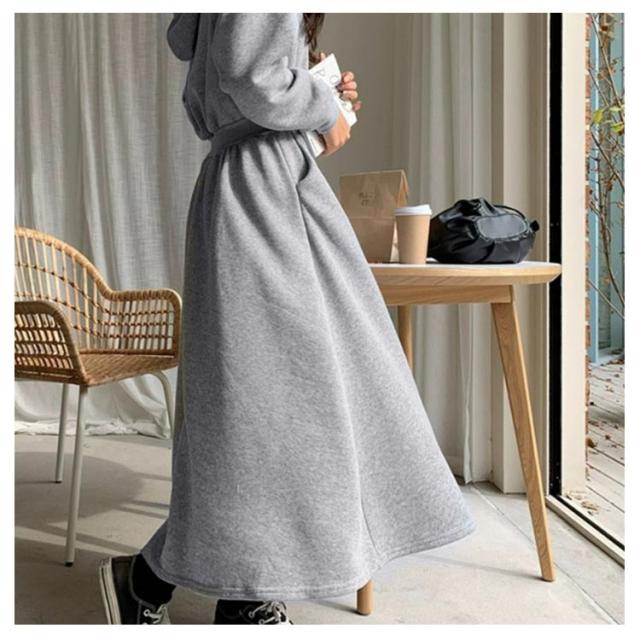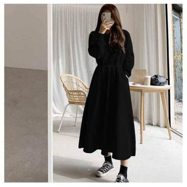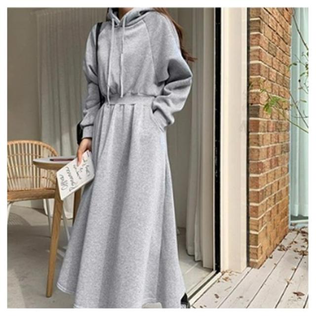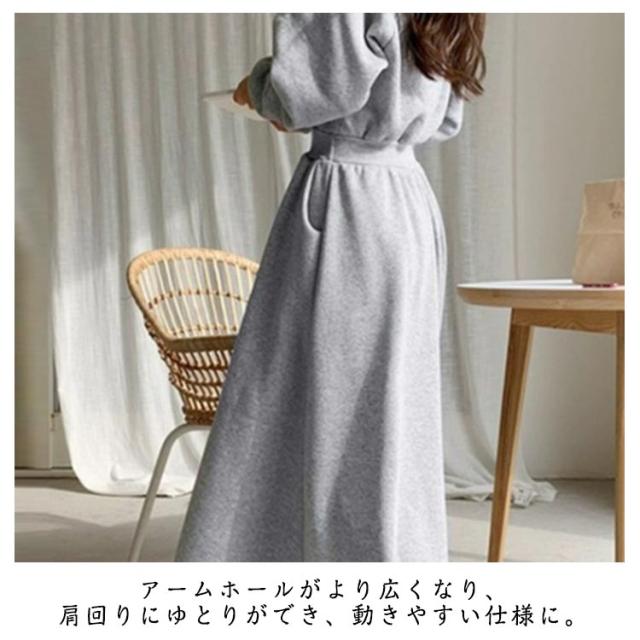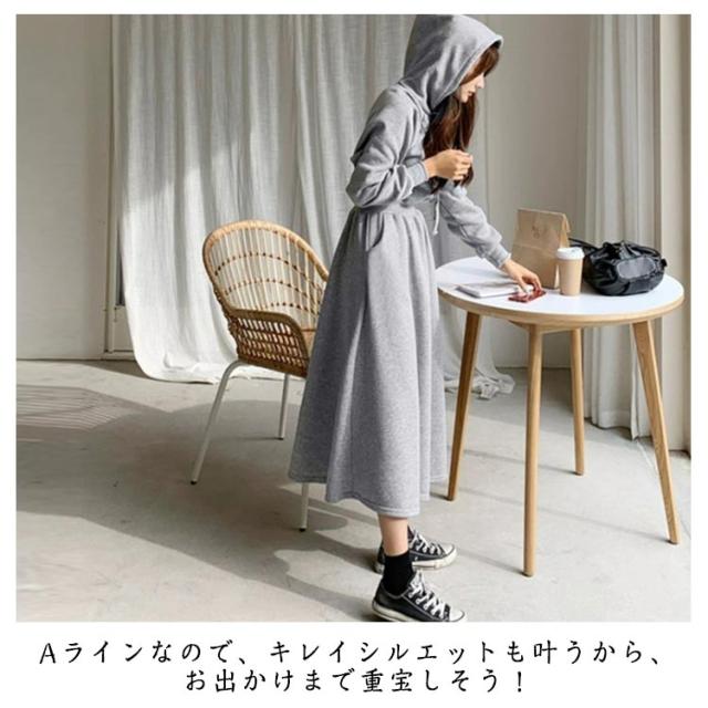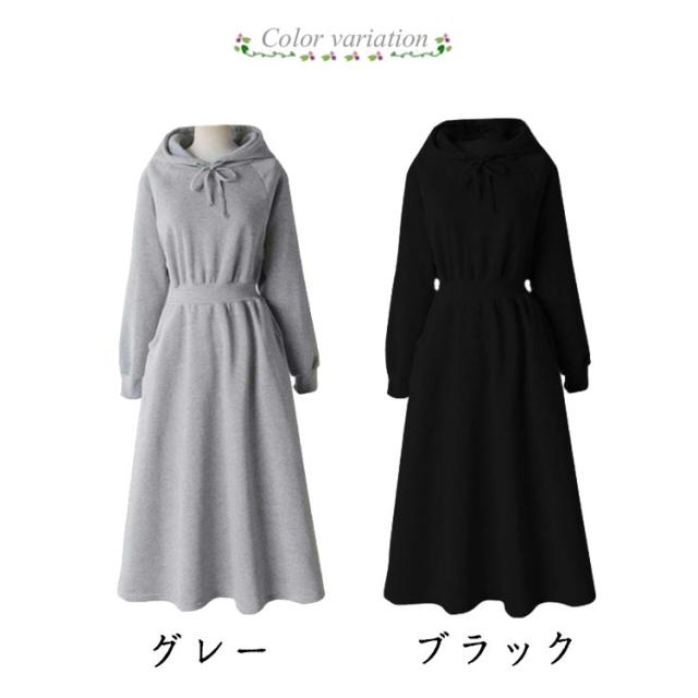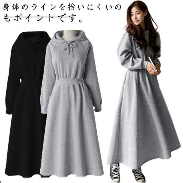 ワンピース 秋 冬 ロング 長袖 パーカーワンピース スウェットワンピース ウエストタックス ウェット aライン ゆったり 着痩せ きれいめ 大きいサイズ フード付き ポケット付き パーカー ワンピ カジュアル シンプル おしゃれ 送料無料